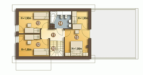 Eco 1 [czytaj: eko] to pierwszy nowy projekt z serii projektów domów ekonomicznych. Seria projektów ekonomicznych, będzie zawierać projekty nowe oraz już istniejące. Będą to projekty domów oszczędnych w kosztach budowy oraz użytkowaniu, przez co są bardziej ekologiczne, przy zachowaniu atrakcyjnych rozwiązań architektonicznych. Aby ułatwić identyfikację takich projektów, zamierzamy wyróżnić je specjalnym łatwo rozpoznawalnym logiem eco. Eco 1 jest to projekt nowoczesnego domu jednorodzinnego dla 4-5cio osobowej rodziny. Zaprojektowany dom ma prostą i zwartą formę, co przekładać się ma na oszczędność w jego budowie oraz oszczędność w użytkowaniu poprzez zminimalizowanie miejsc narażonych na straty ciepła. Pomimo prostej formy dom ma przyjemny, przyciągający uwagę wygląd. Parter jako część ogólna obejmuje: doświetlony dużymi przeszkleniami pokój dzienny z kominkiem i kuchnią. Dodatkowo mamy do dyspozycji niewielki pokój i małą ale wygodną łazienkę. Poddasze to część prywatna, obejmująca: aż trzy sypialnie oraz wspólną łazienkę. W głównej sypialni udało się wydzielić przestrzeń na sporą garderobę. Z sypialni możemy wyjść bezpośrednio na taras zewnętrzny, zaprojektowany na stropie garażu. Dom z powodzeniem może być wykorzystany jako rekreacyjny - całoroczny... Sprawdź inne projekty domów - Zapraszamy !
