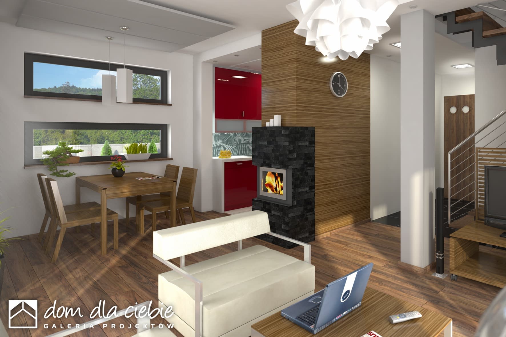 Eco 3 jest to projekt nowoczesnego domu jednorodzinnego dla 4-ro osobowej rodziny. Zaprojektowany dom ma prostą i nowoczesną formę, co przekładać się ma na oszczędności w budowie domu. Parter to część ogólna, która obejmuje: przeszklony dużymi drzwiami tarasowymi, salon z centralnie umiejscowionym kominkiem oraz jadalnią i niewielką kuchnią. Mamy tu też do dyspozycji dodatkowy pokój, niedużą ale wygodną łazienkę oraz pralnie z c.o. Poddasze to część prywatna, która obejmuje: dwie sypialnie oraz wspólną wygodną łazienkę. W jednej sypialni wydzielono przestrzeń na sporą garderobę. Dom z powodzeniem może być wykorzystany jako rekreacyjny - całoroczny... Sprawdź inne projekty domów - Zapraszamy !