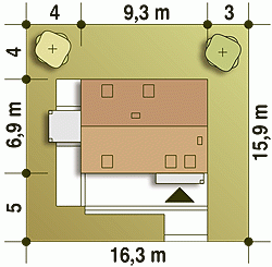 - Minimalne wymiary działki15.9 x 16.3m
