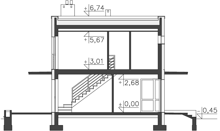 - Rozwiązania konstrukcyjno-materiałowe: ściany, strop/stropy, nadproża okienne i drzwiowe, wieńce, dach, schody na poddasze nieużytkowe, kominy i wentylacje, izolacje, powłoki zabezpieczające, posadzki i podłogi, tynki i okładziny, stolarka okienna i drzwiowa, obróbki blacharskie, rynny i rury spustowe, taras i płyta wejściowa