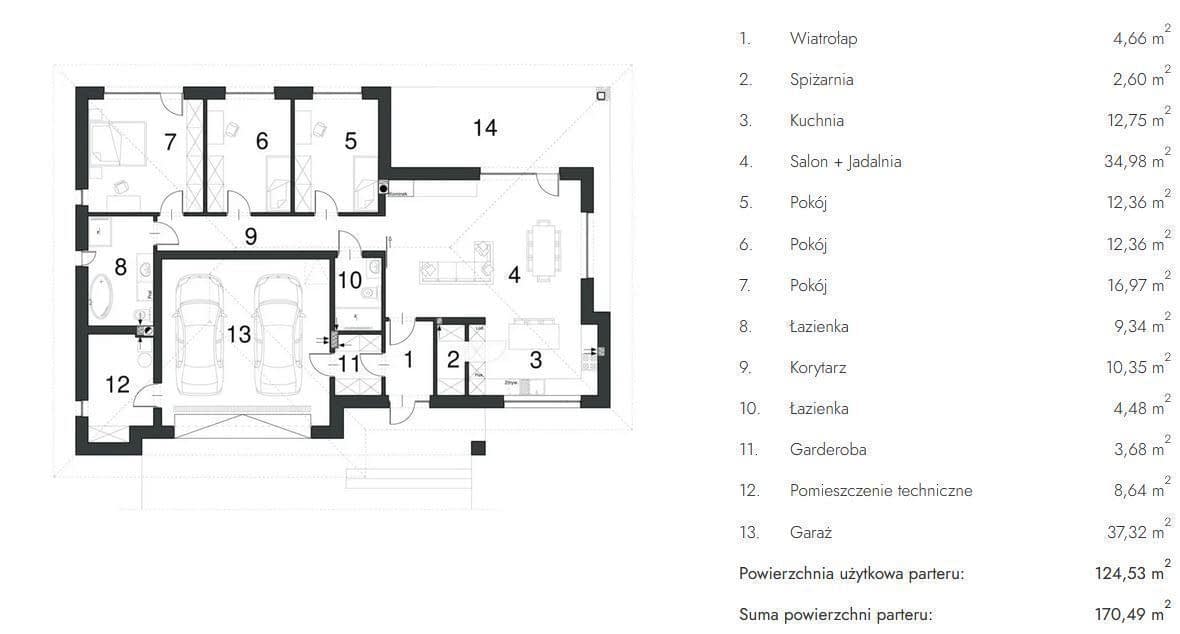 Gotowy projekt domu, który Ci dostarczamy, składa się z kilku działów, są to: