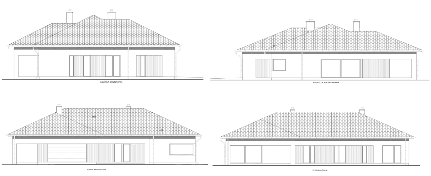 - Część rysunkowa (rzuty parteru, poddasza, piętra i dachu, przekroje i elewacje budynku).