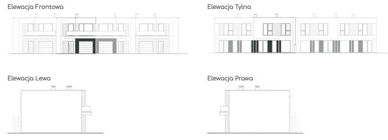 Duże okna zapewniają doświetlenie wszystkich pomieszczeń i jednocześnie nadają budynkowi nowoczesnego wyglądu. Elewacja budynku to połączenie bieli i szarości ocieplone okładziną z desek.