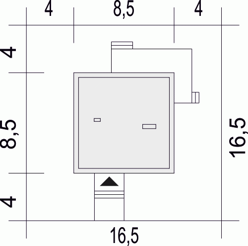 - Minimalne wymiary działki16.5 x 16.5m