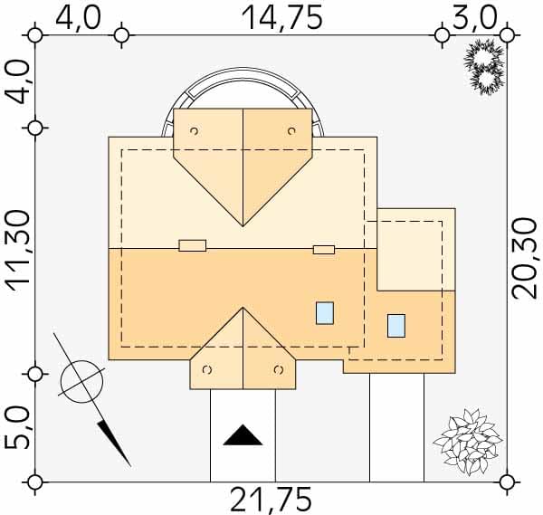 - Minimalne wymiary działki20.3 x 21.75m