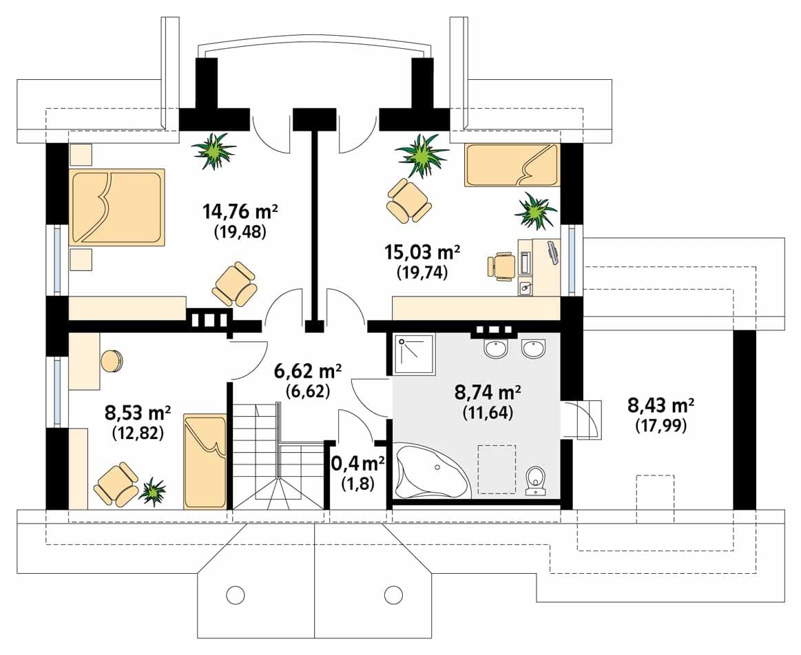- KondygnacjeParterowy, z poddaszem