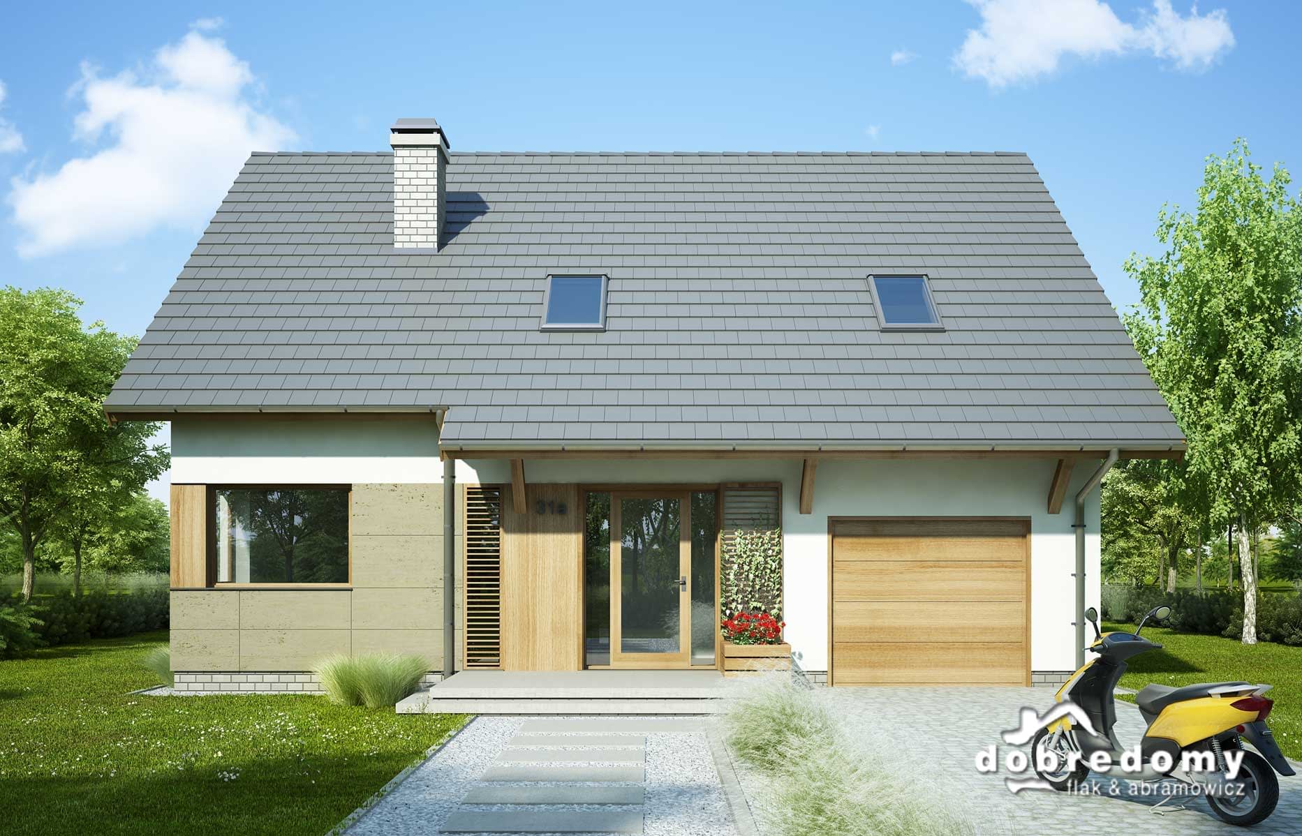 Elewacje pokryte tynkiem strukturalnym w systemie ociepleń Termo Organika i płytami włókno-cementowymi (lub kamiennymi) oraz okładziną drewnianą. W projekcie zastosowano okna dachowe marki FAKRO. Pokrycie dachu - dachówka ceramiczna lub cementowa CREATON.
