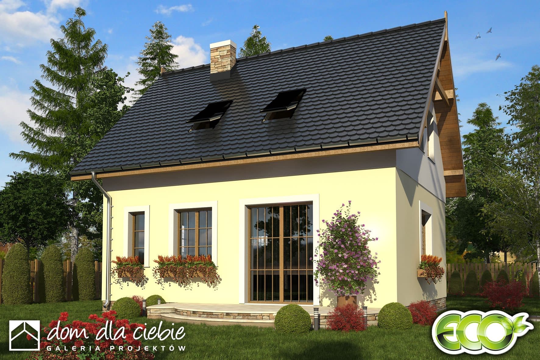 Klasyczny mały domek dla 3-4 osobowej rodziny. Prosta i zwarta bryła oraz niewielka powierzchnia sprawiają, że będzie tani w realizacji i użytkowaniu. Na parterze strefa dzienna z możliwością wydzielenia niewielkiego pokoiku do pracy. Na poddaszu strefa nocna: dwie sypialnie, garderoba i łazienka.