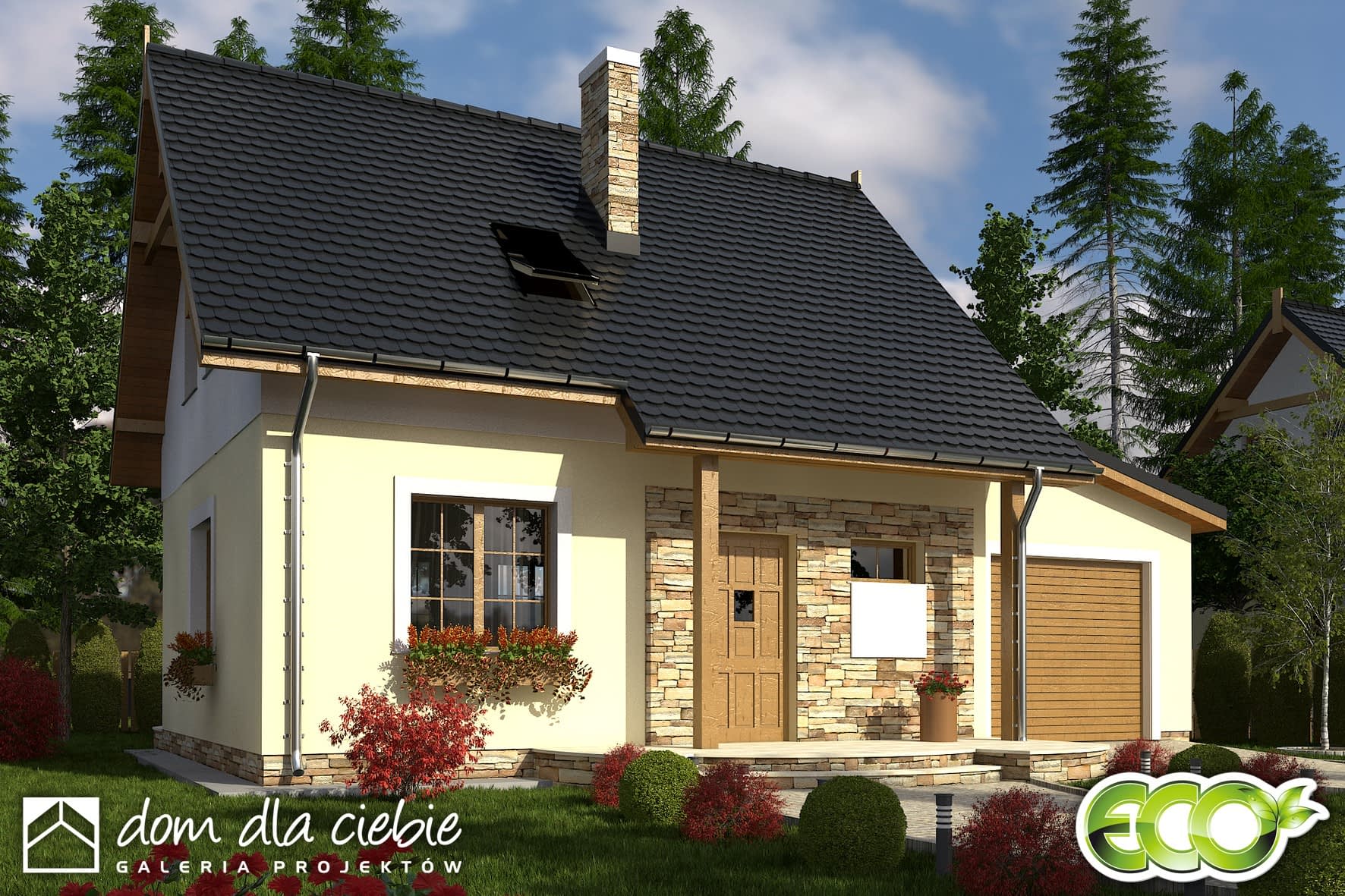 Klasyczny mały domek dla 3-4 osobowej rodziny. Prosta i zwarta bryła oraz niewielka powierzchnia sprawiają, że będzie tani w realizacji i użytkowaniu. Na parterze strefa dzienna z możliwością wydzielenia niewielkiego pokoiku do pracy. Na poddaszu strefa nocna: dwie sypialnie, garderoba i łazienka.