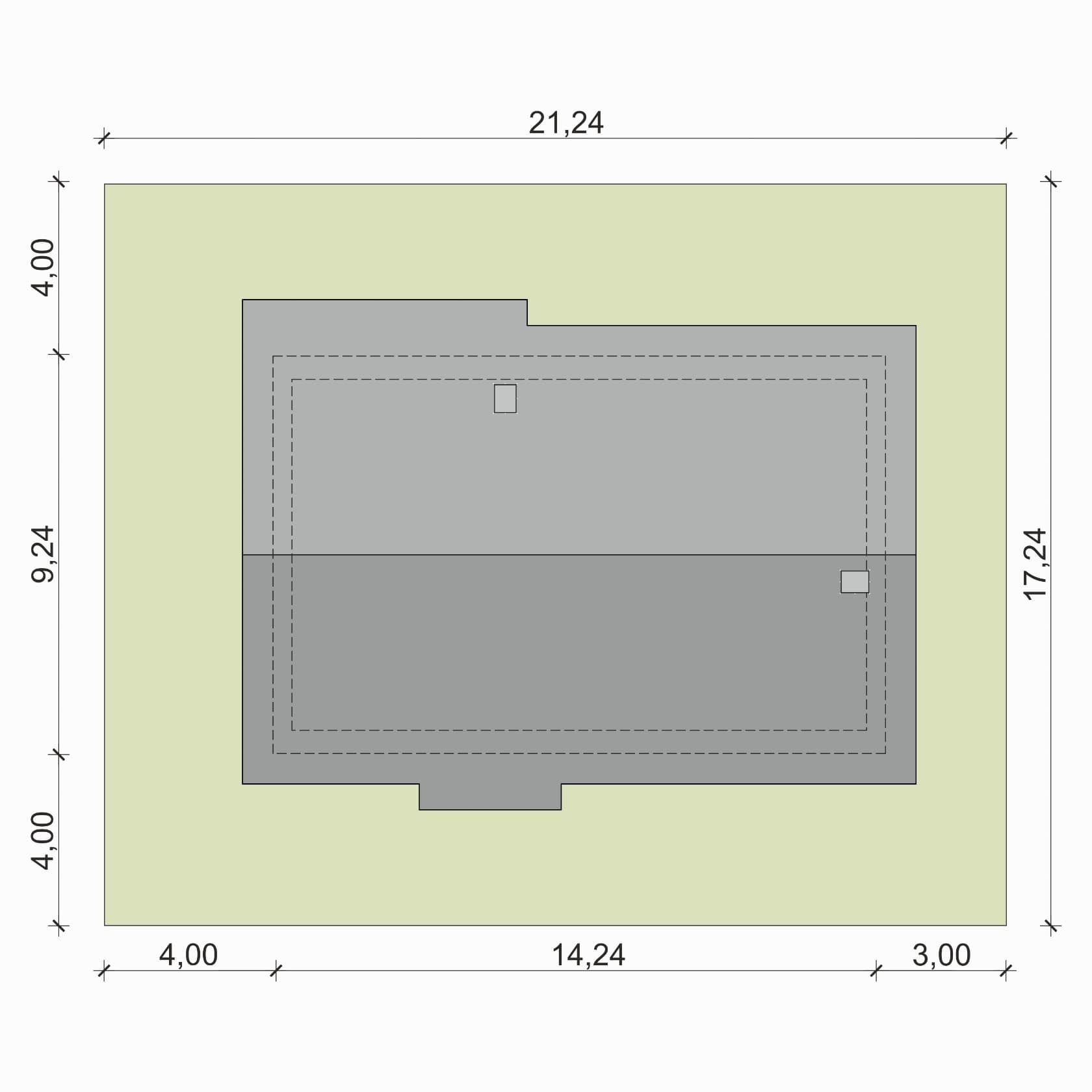 - Szerokość domu14.24 m