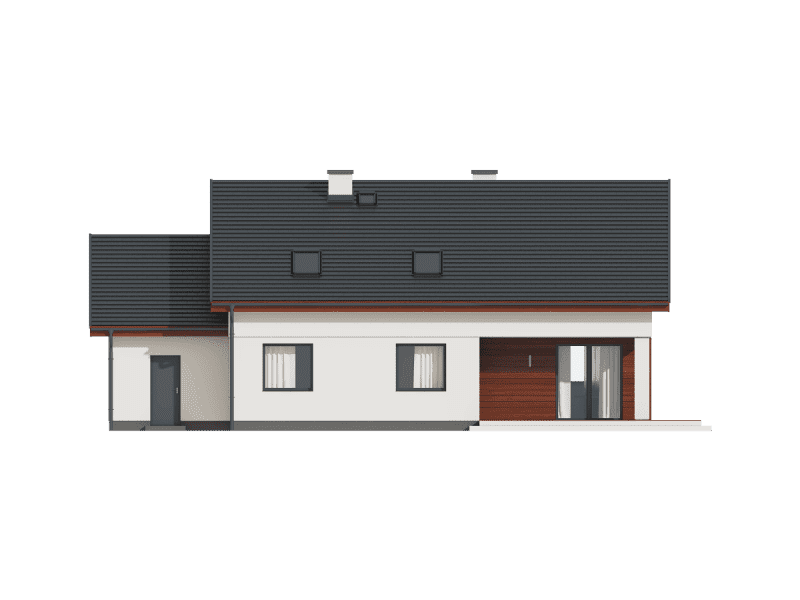Projekt Fano B to wyjątkowo ekonomiczny i zarazem wygodny dom parterowy. Funkcjonalny układ pomieszczeń pozwala na niedużej powierzchni użytkowej, zapewnić komfort użytkowania wieloosobowej rodzinie. Główną zaletą projektu jest możliwość zaadaptowania poddasza domu na cele użytkowe.