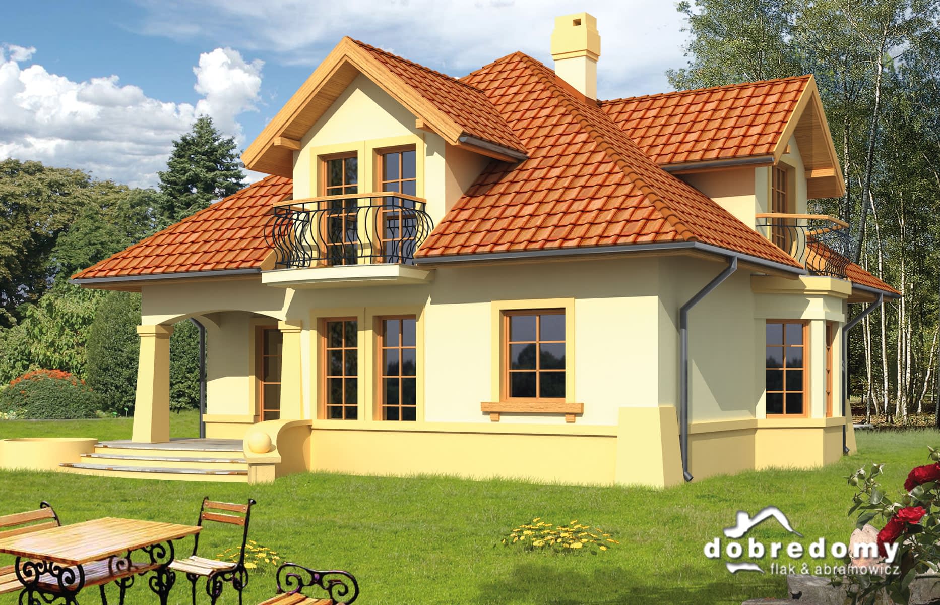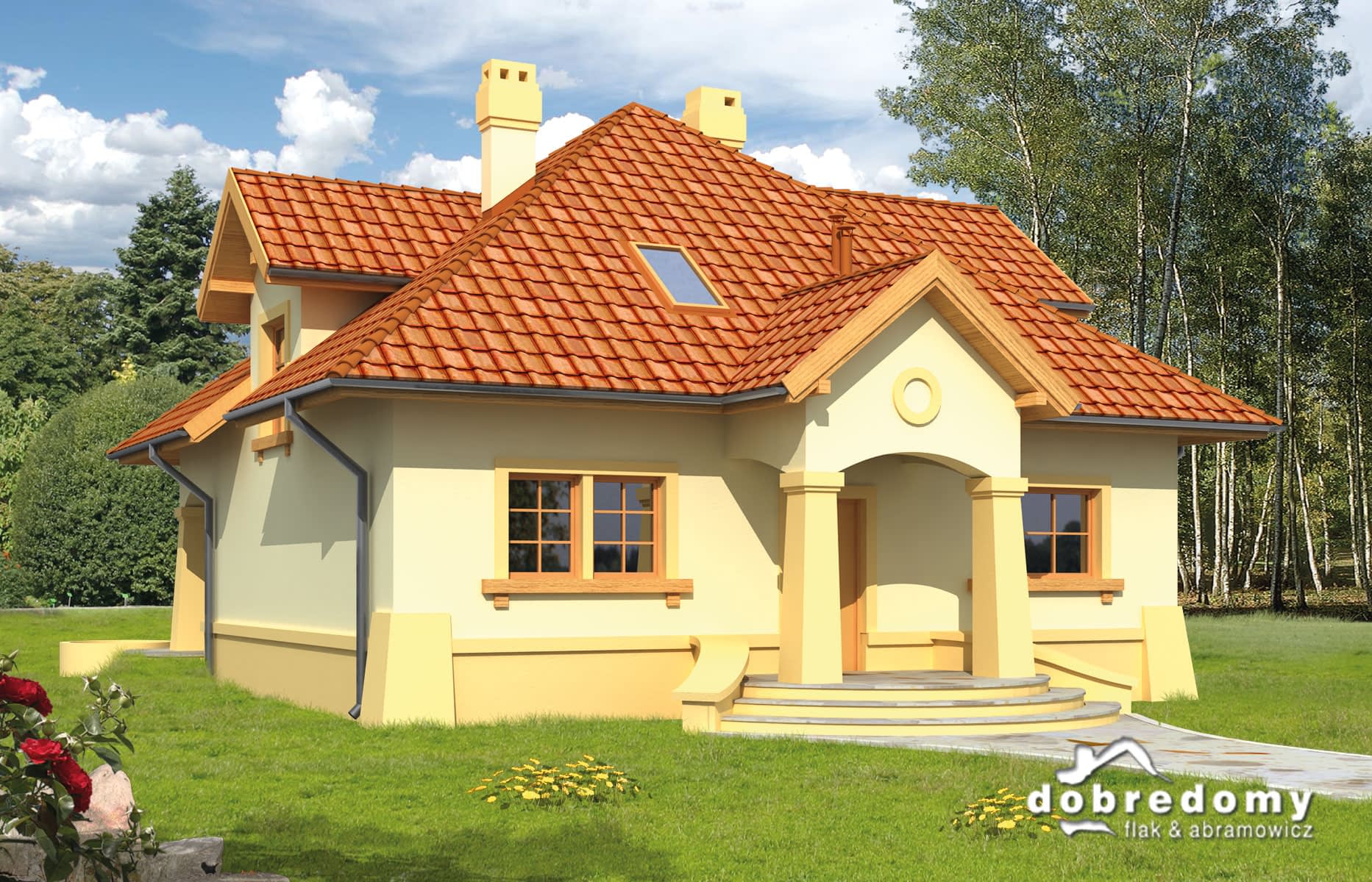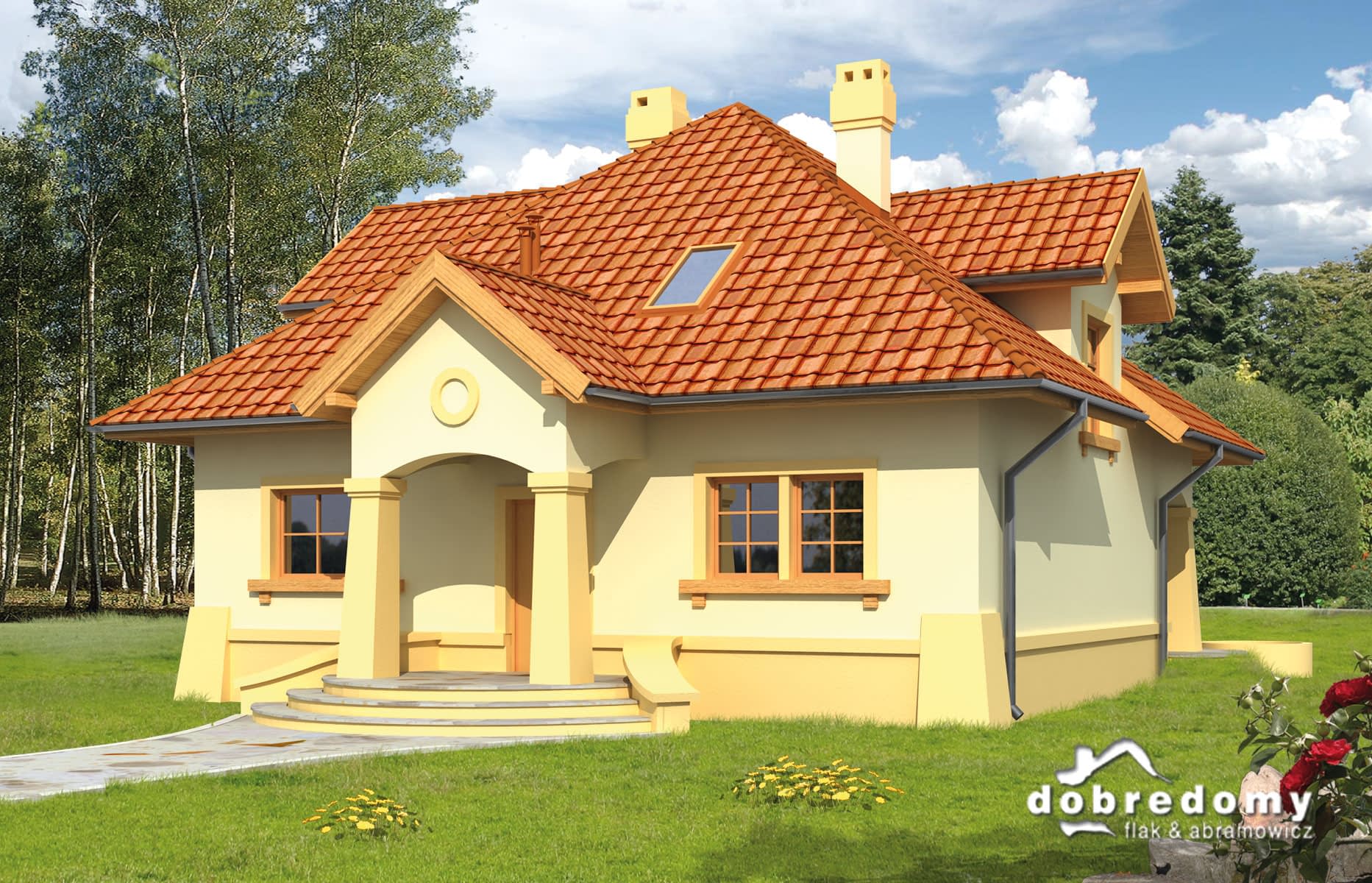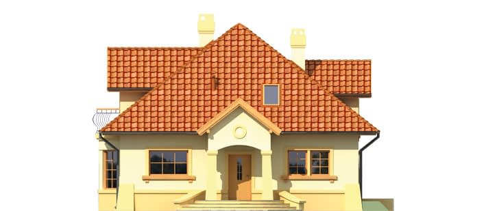 Elewacje pokryte tynkiem strukturalnym w systemie ociepleń Termo Organika. Pokrycie dachu - dachówka ceramiczna lub cementowa.