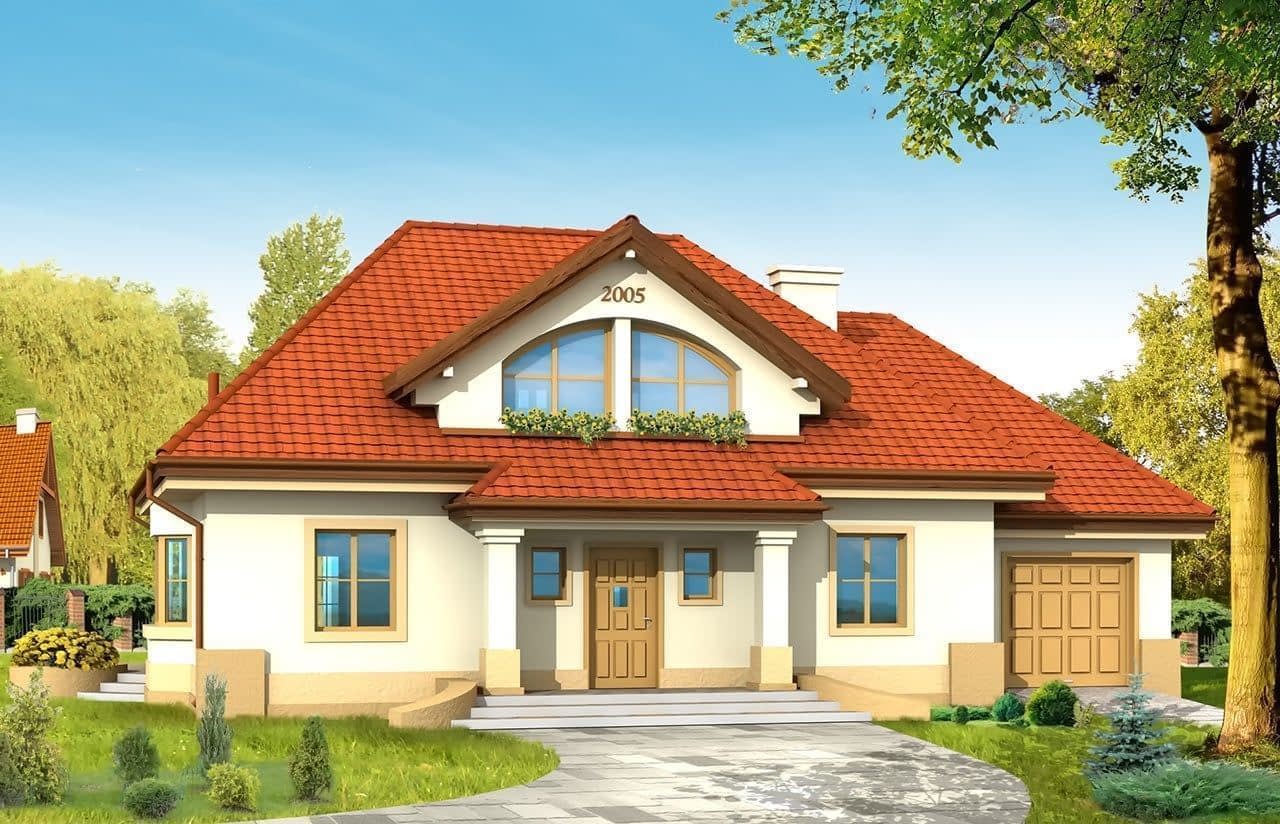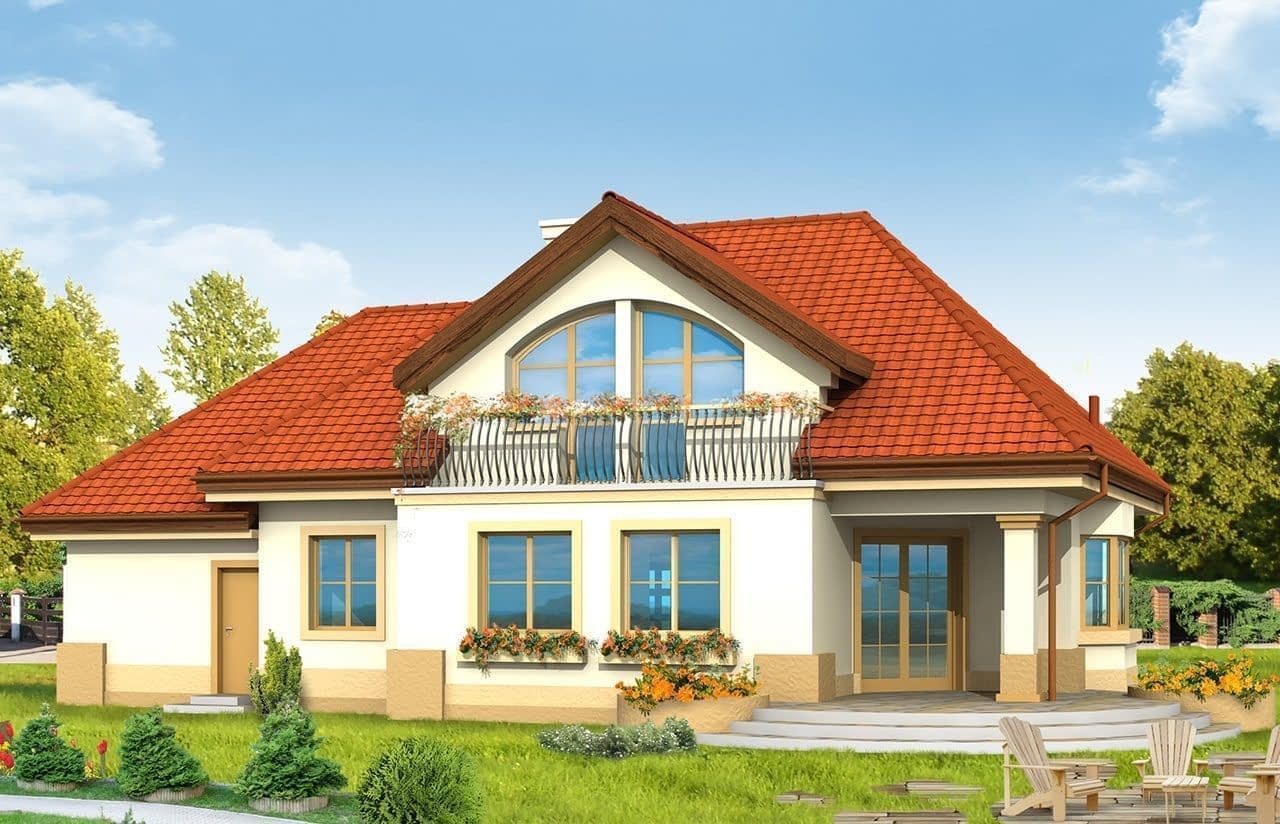 Projekt domu Faworyt to willa o zwartej bryle, nawiązująca do tradycyjnej architektury dworu polskiego. Przeznaczony jest dla 5 osobowej rodziny. Na parterze zaprojektowano dodatkowy pokój - do pracy lub, gościnny oraz obszerny salon z jadalnią otwarty na duży podcień. W projekcie domu Faworyt każdy pokój na poddaszu wyposażony jest w garderobę lub schowek. Pomieszczenie nad garażem można wykorzystać jako pokój "hobby" lub składzik - stryszek. W projekcie domu Faworyt istnieje możliwość rozbudowy garażu. Pracownia MGProjekt dysponuje również wersją w odbiciu lustrzanym oraz inne wersje: projekt domu Faworyt 2, projekt domu Faworyt 3. Zapraszamy!