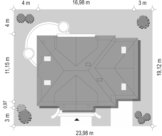 - Minimalne wymiary działki19.12 x 23.85m