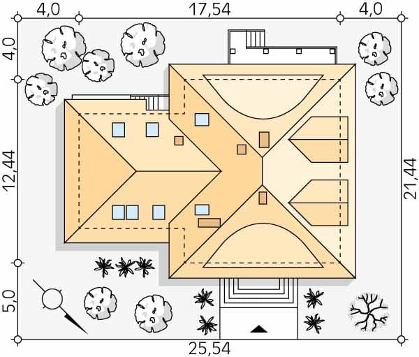- Szerokość domu17.54 m
