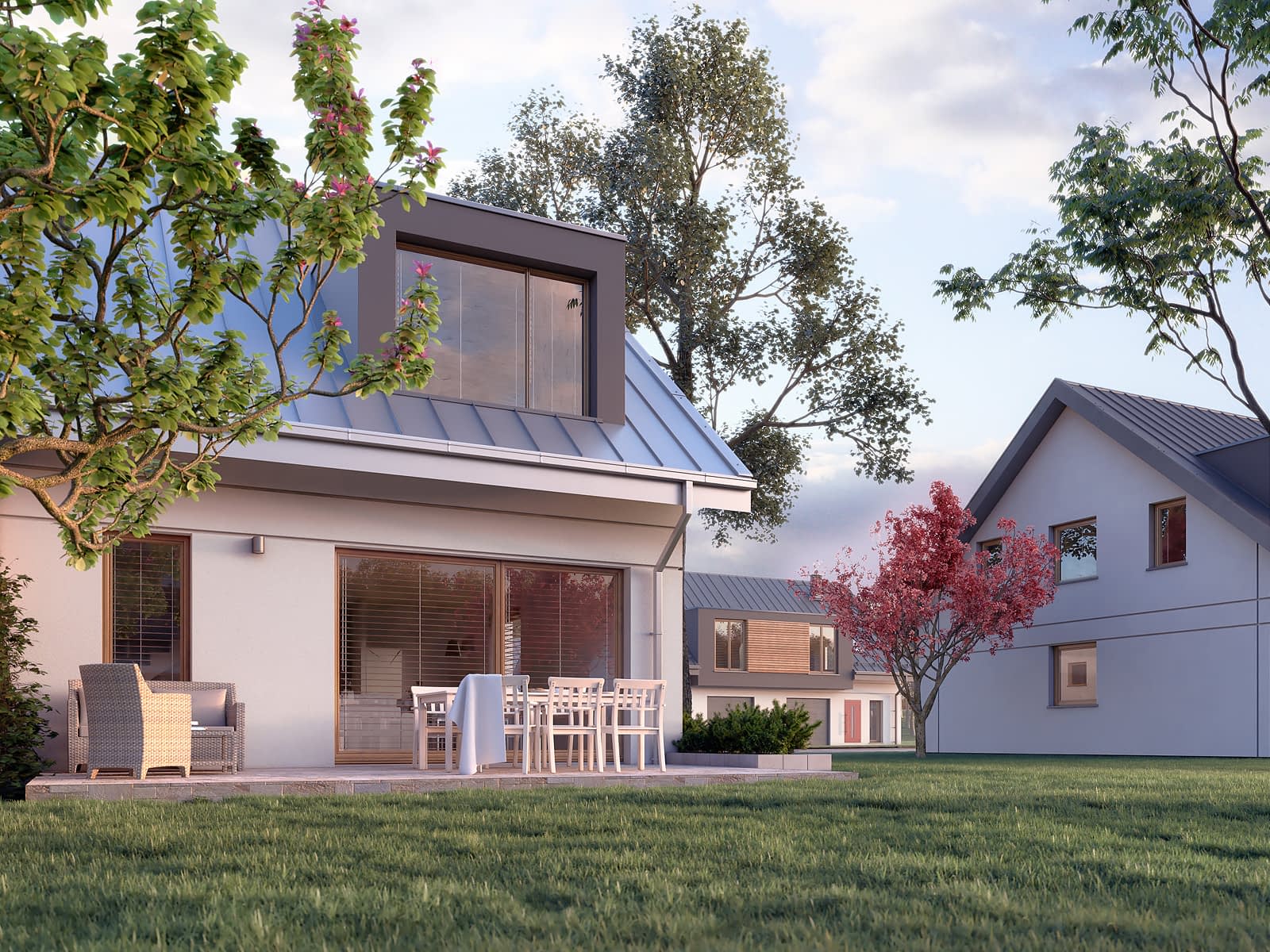 - rzuty poziome poszczególnych kondygnacji (parter, poddasze lub piętro),