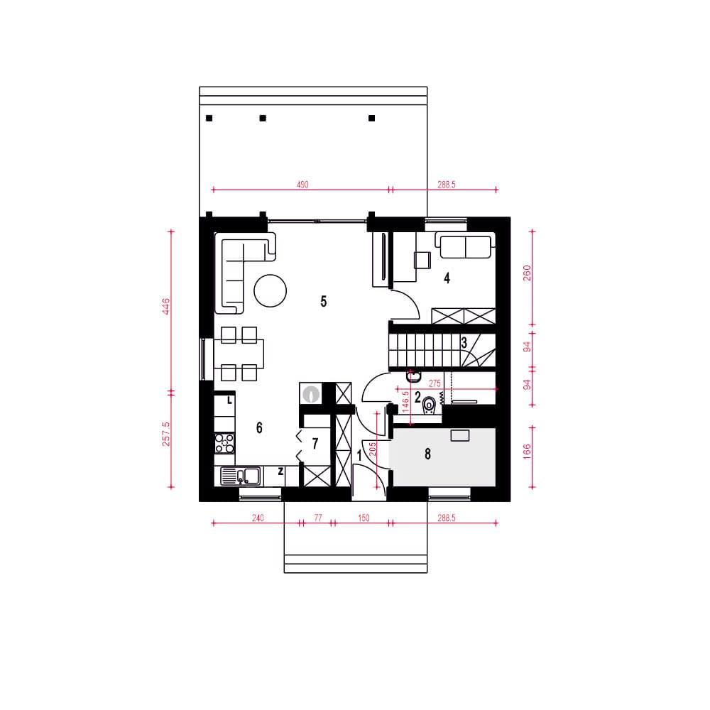 - Długość domu8 m