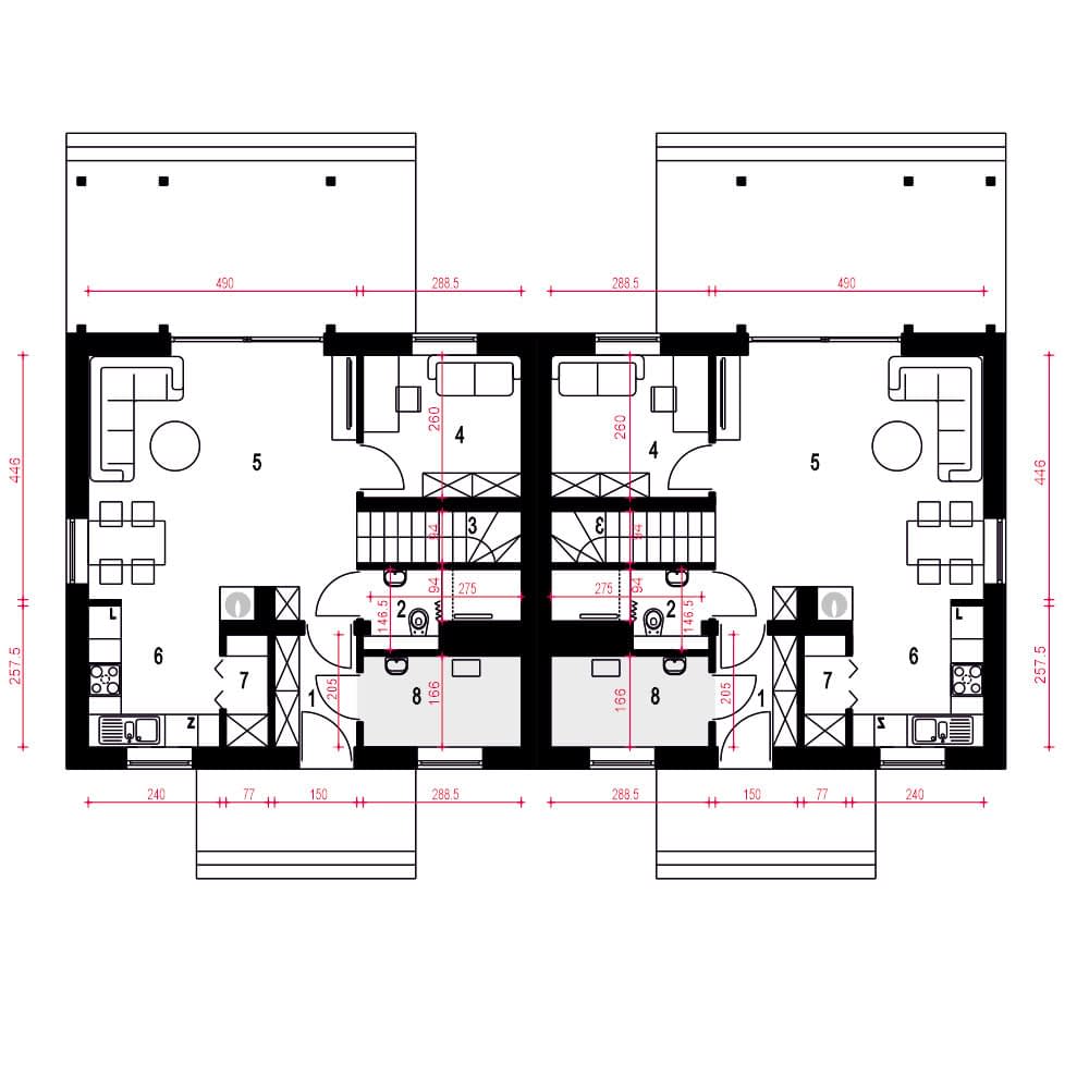 - Minimalne wymiary działki17 x 25.2m