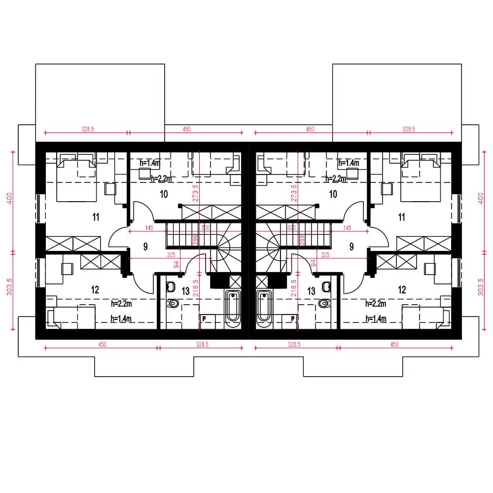 - Długość domu8 m