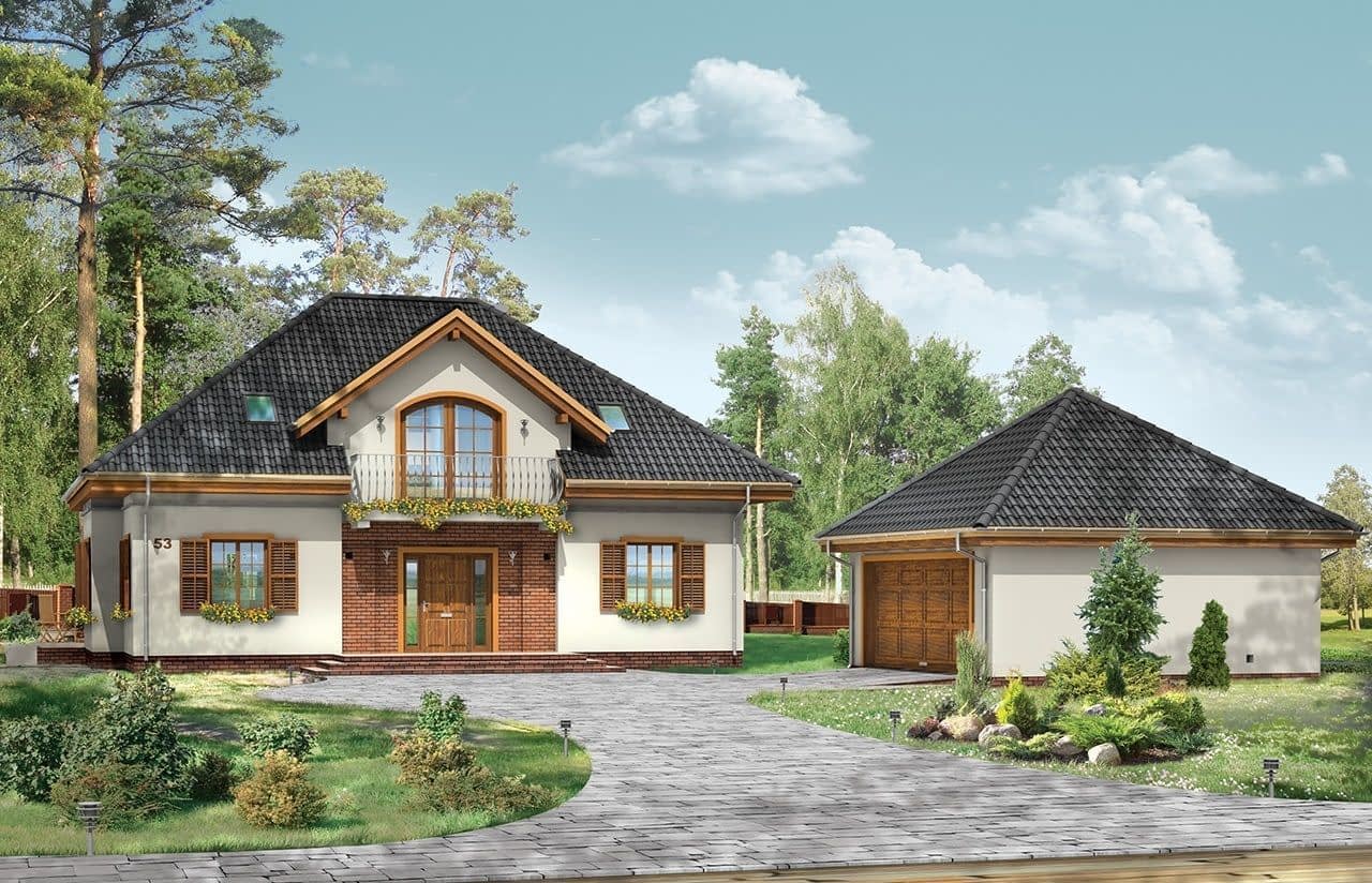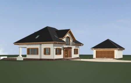 Projekt domu Filip to pełen uroku dom jednorodzinny z wolnostojącym, dwustanowiskowym garażem. Budynek charakteryzuje się atrakcyjną bryłą z łagodnym, wielospadowym dachem, w który wkomponowano duże lukarny z balkonami. Powierzchnia willi Filip pozwoli wygodnie mieszkać rodzinie czteroosobowej. Od strony ogrodu znajduje się podcień, na parterze oprócz obszernego salonu z otwartą jadalnią zaprojektowano dodatkowy pokój - gabinet lub sypialnię gościnną. W części piętra znajdują się sypialnie z garderobami i duża wygodna łazienka. Wolnostojący garaż formą architektoniczną nawiązuje do budynku. Pracownia dysponuje odbiciem lustrzanym projektu domu Filip. Zapraszamy!Projekt domu Filip dostępny jest w wersji bez garażu - cena 4,590.00 zł, oraz z garażem wolnostojącym dedykowanym do projektu Filip - cena za komplet: dom + garaż BG 100 - 5 190,00 zł.