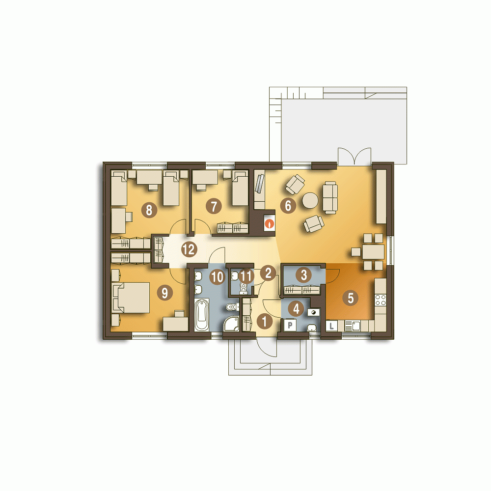 Nasze projekty oferujemy w 3 egzemplarzach, zawierających projekt architektoniczno-budowlany i projekt techniczny. Projekt zagospodarowania działki lub terenu nie wchodzi w skład projektu oferowanego do sprzedaży. Projekt ten należy zlecić we własnym zakresie lokalnemu projektantowi, który opracuje go na podstawie danych zawartych w projekcie architektoniczno-budowlanym i technicznym, po dostosowaniu projektu do warunków lokalnych i wymagań inwestora.
