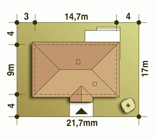 - Minimalne wymiary działki17 x 21.7m
