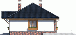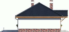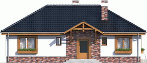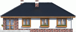 Atrakcyjny projekt domu parterowego. Projekt przewiduje wyraźny podział na strefy: dzienną - kuchnia ze spiżarnią, wc, jadalnia i pok.dzienny i nocną - 3 pokoje sypialne i łazienka. Strych nad stropem można wykorzystać do celów magazynowych.