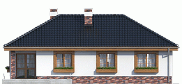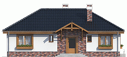 Sympatyczny dom parterowy z poddaszem możliwym do wykorzystania jako strych magazynowy, z wyraźnym podział na strefy: dzienną (kuchnia ze spiżarnią, wc, jadalnia i pok.dzienny) i nocną (3 pokoje sypialne i łazienka. Do podanej powierzchni użytkowej nie wliczono powierzchni garażu i pomieszczenia technicznego... Sprawdź inne projekty domów - Zapraszamy !