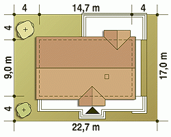 - Minimalne wymiary działki17 x 22.7m