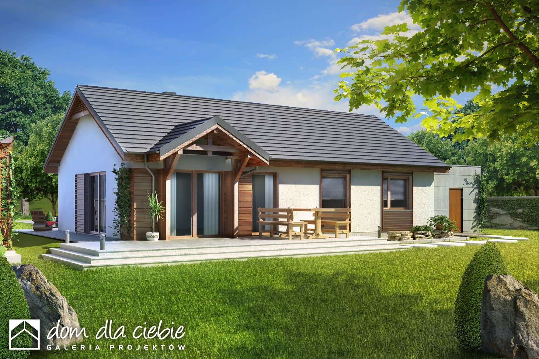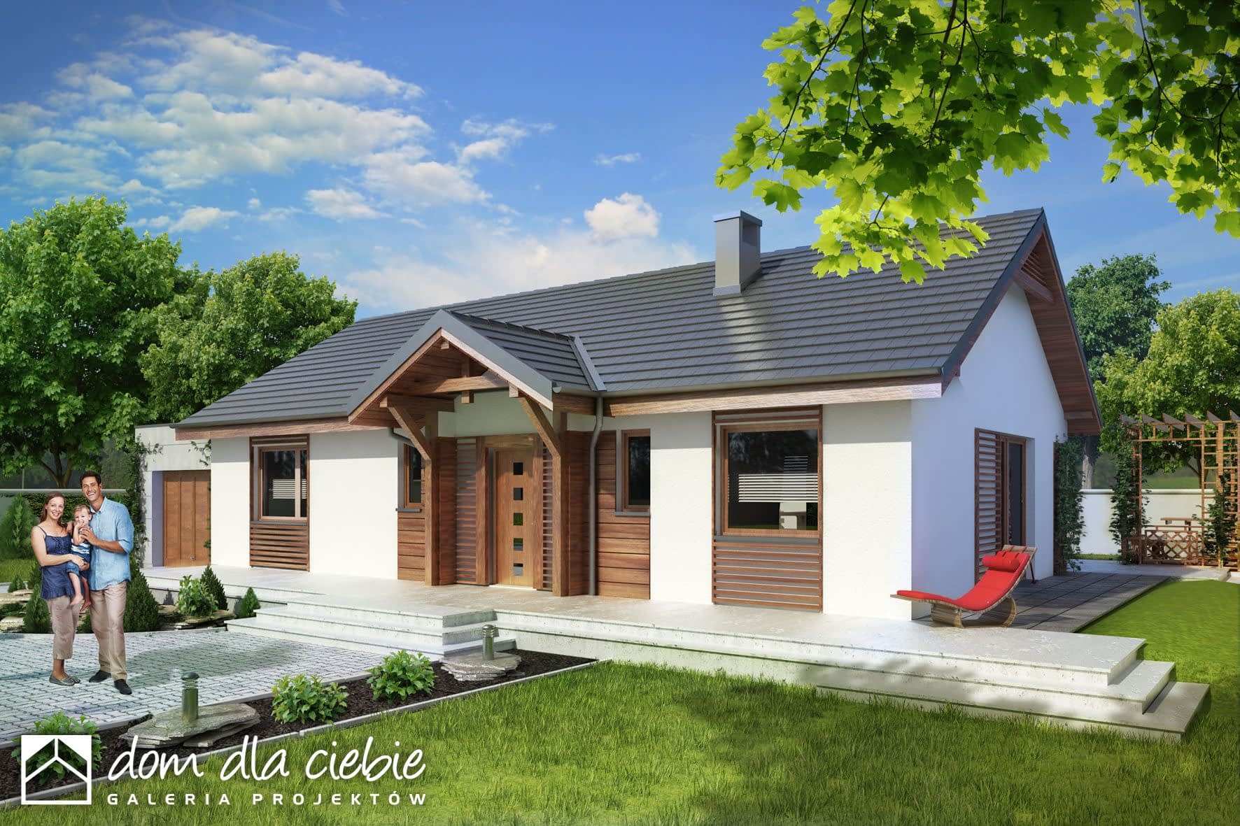 elewacje: tynk strukturalny/ okładzina drewniana/drewnopodobna