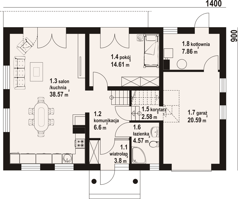 - 1.4 - pokój14.61 m²