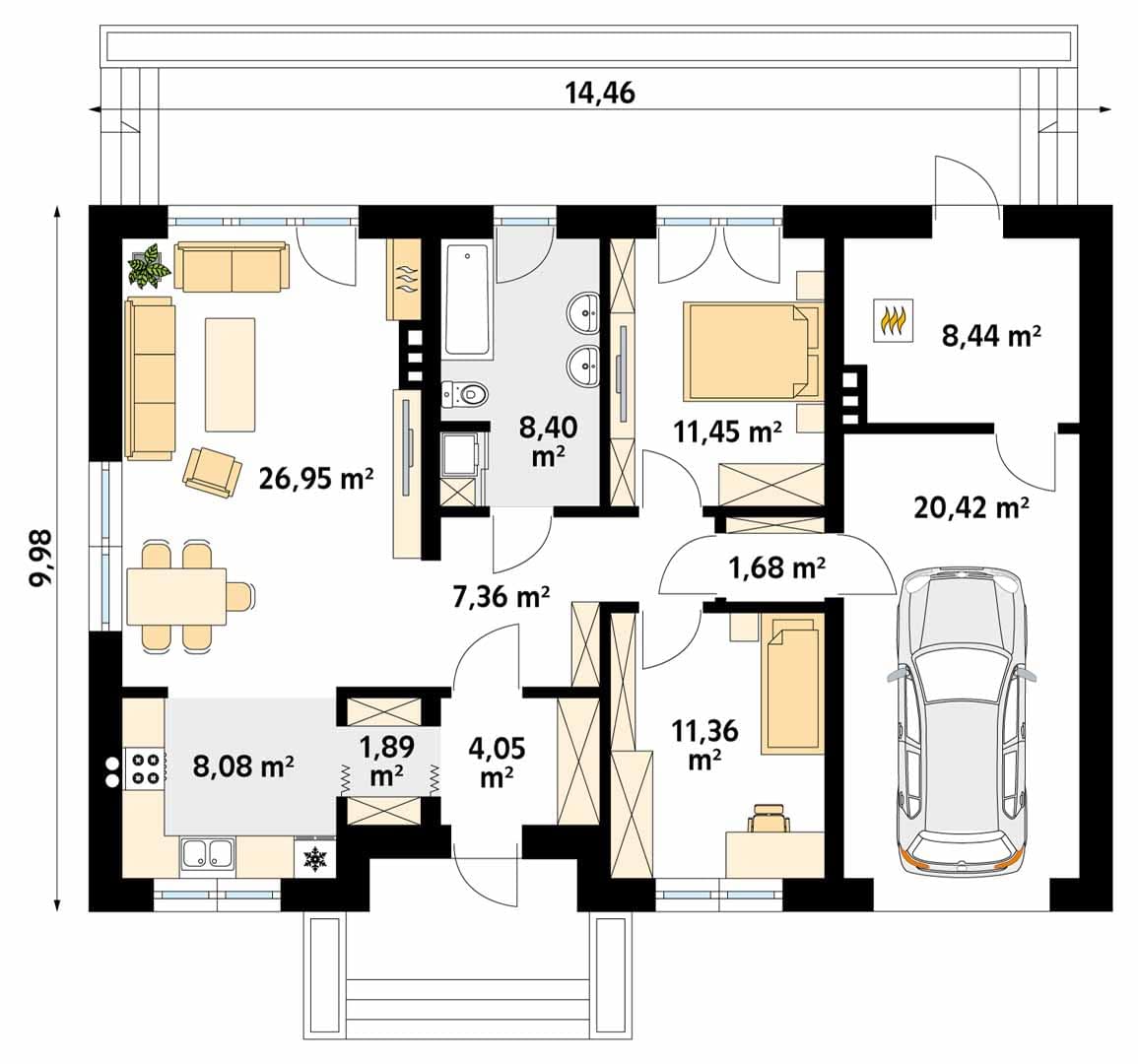 - Szerokość domu14.46 m