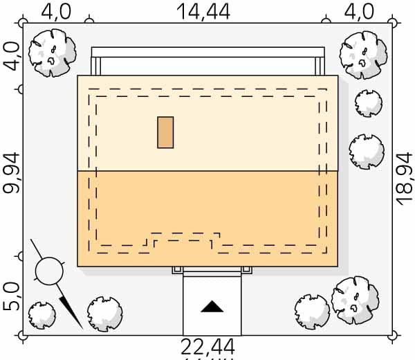 - Minimalne wymiary działki18.94 x 22.44m