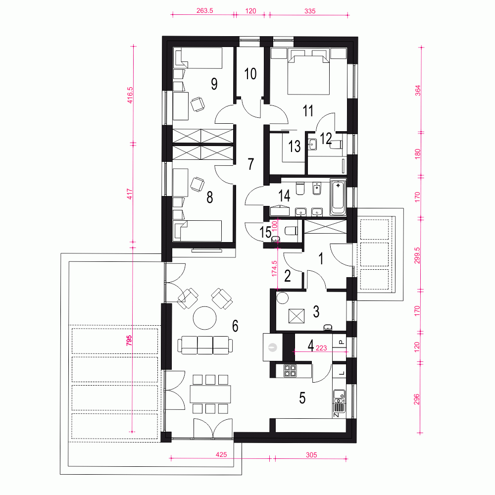 Flora - parterowy projekt domu nowoczesnego dla 4 osobowej rodziny.