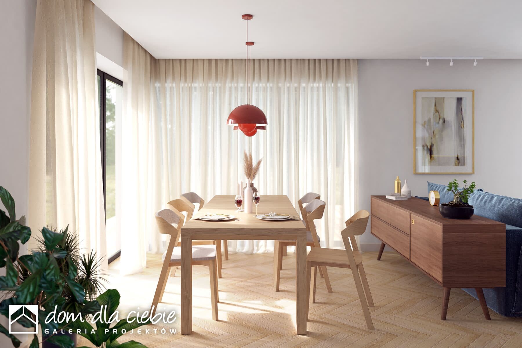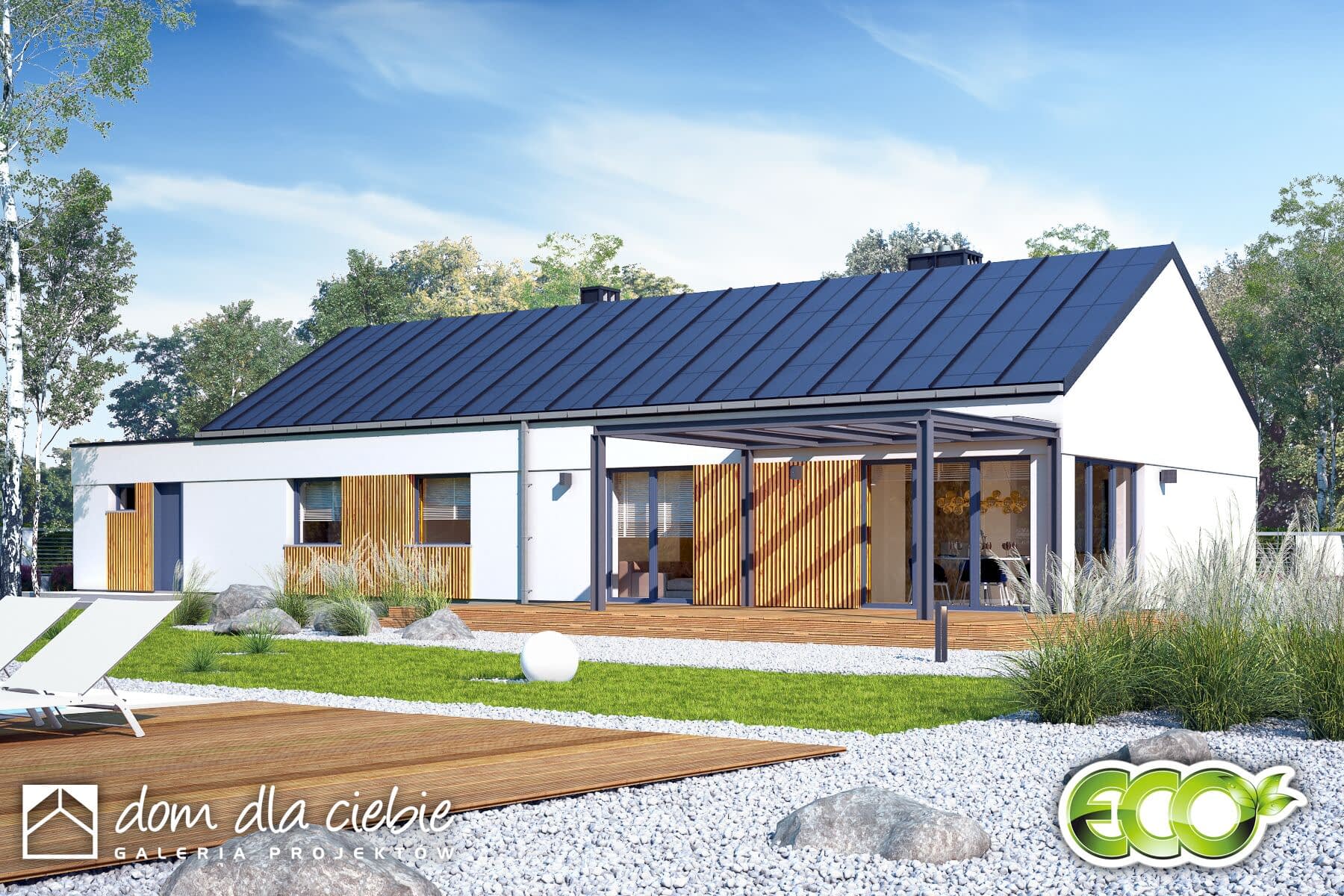 Flora to projekt nowoczesnego parterowego domu typu stodoła. Przedstawiony wariant posiada przybudowany jednostanowiskowy garaż z pomieszczeniem gospodarczym. To propozycja domu jednorodzinnego o maksymalnie uproszczonej formie - z dachem dwuspadowym na planie prostokąta. Flora to projekt kompaktowego domu parterowego przeznaczonego dla czteroosobowej rodziny. Obszerna i wygodna strefa dzienna sprzyja relaksowi. Wygodny salon posiada duże przeszklenia wychodzące na ogród. Usytuowanie kuchni pozwala na jej zamknięcie. Zaprojektowana obok spiżarnia pomieści dodatkowe sprzęty i zapasy. Strefa nocna to 3 sypialnie, w tym jedna z własną łazienką i garderobą, wspólna łazienka z oknem, oraz wspólna garderoba.W projekcie przewidziano ogrzewanie na paliwo stałe.