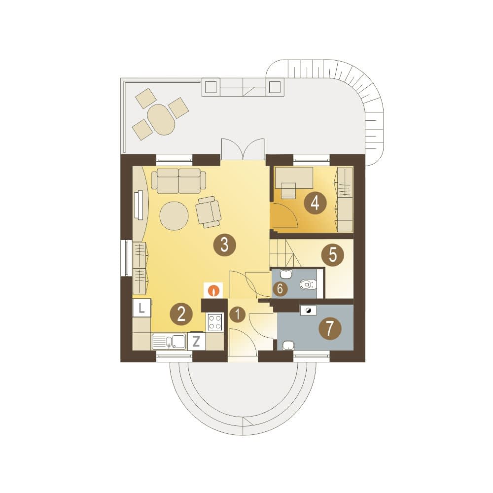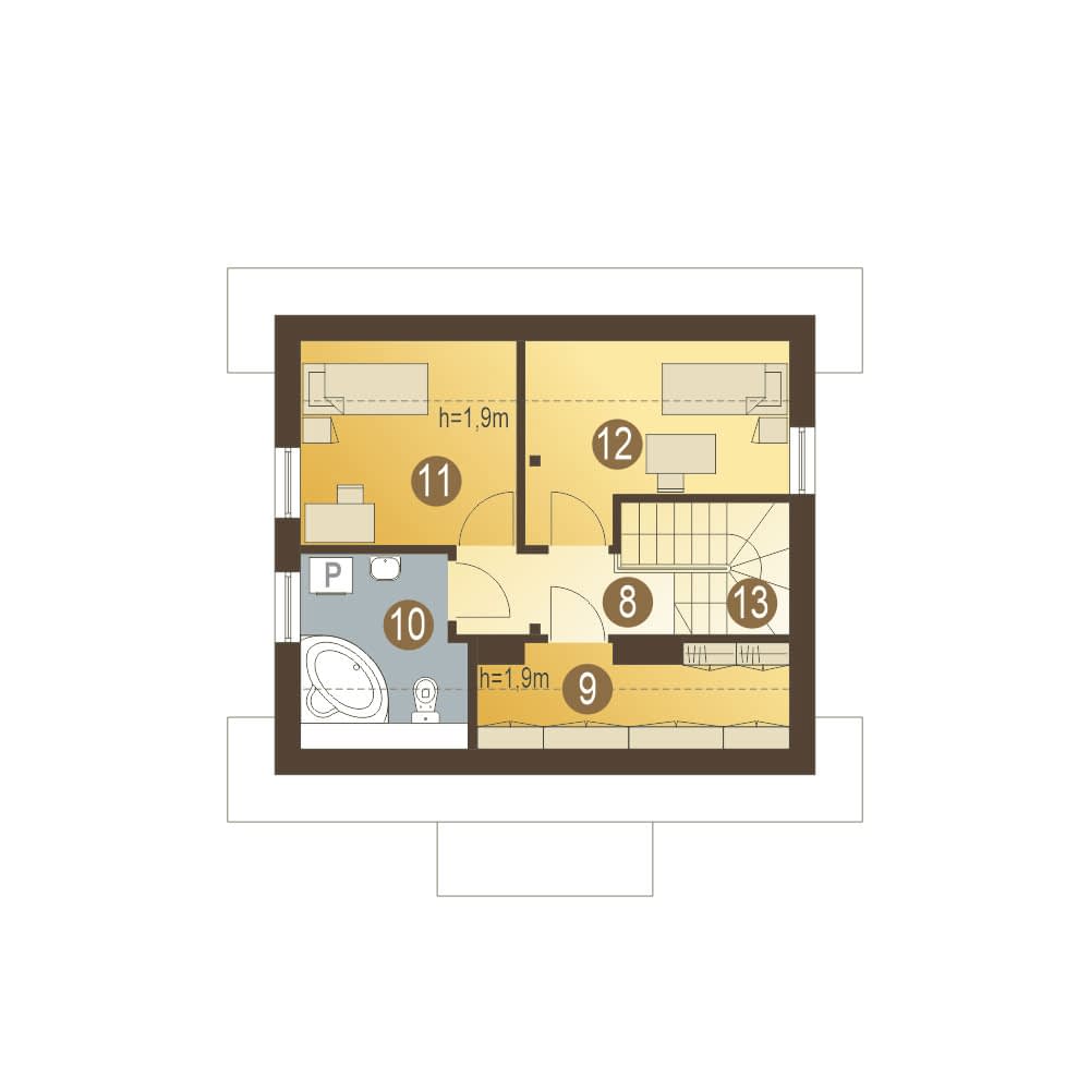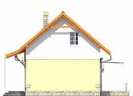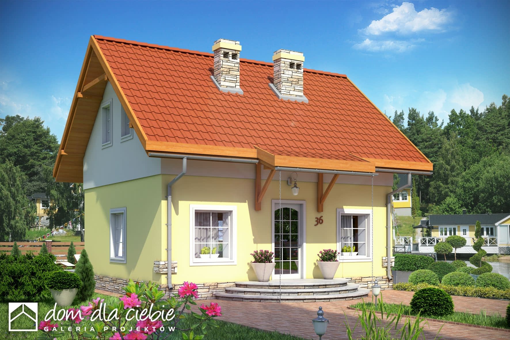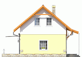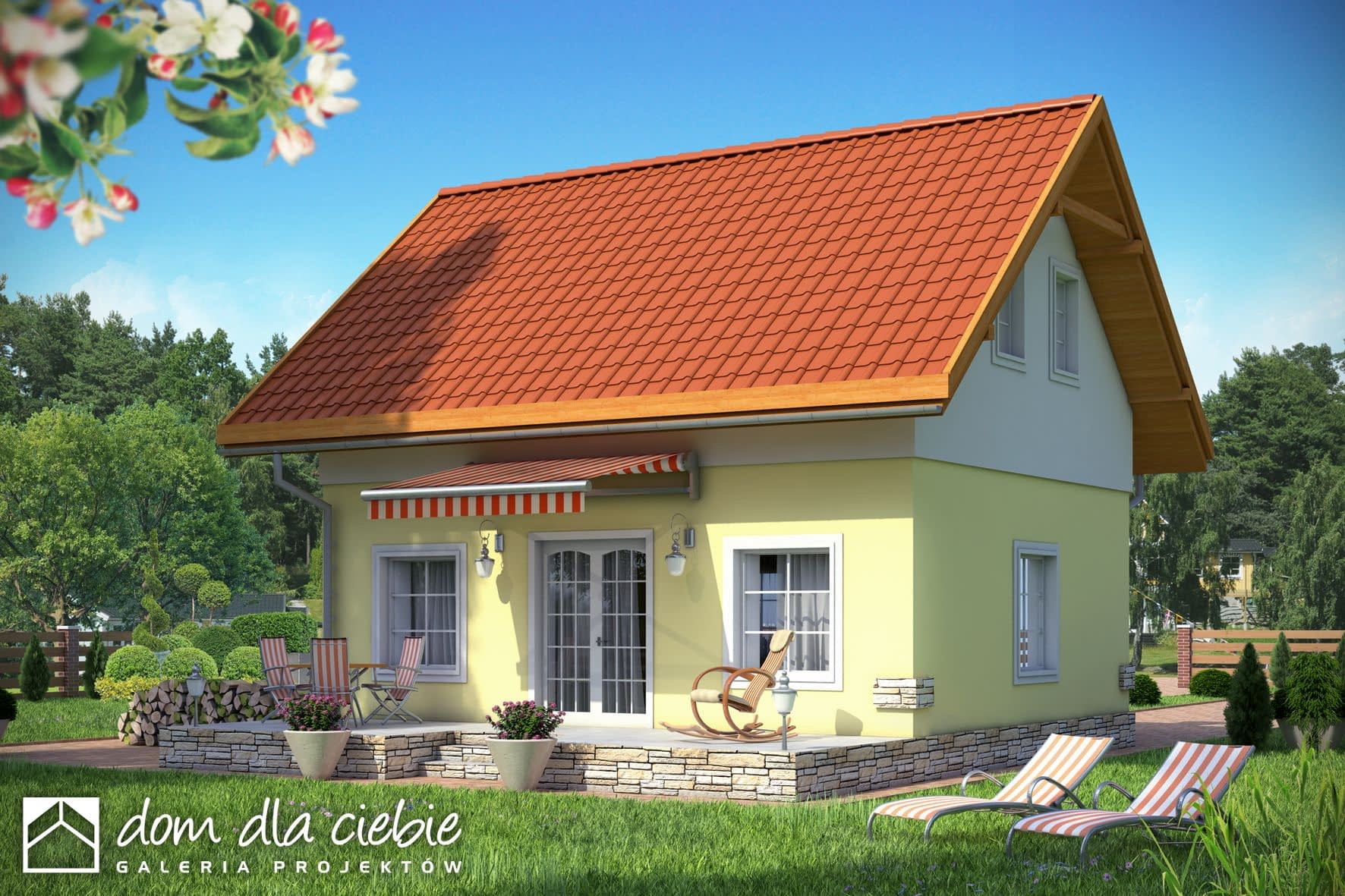 Mały dom dwukondygnacyjny dla 3-4 osobowej rodziny o zwartej bryle, tani w realizacji i eksploatacji. Niewielka powierzchnia zabudowy pozwala zlokalizować go na bardzo małej działce. Strefa dzienna na parterze zawiera pokój, gabinet, kuchnię . Na poddaszu mieści się strefa nocna. Podział na strefy zapewni mieszkańcom domu wygodę i komfort.Ten projekt może również z powodzeniem pełnić rolę małego domu letniskowego. Sprawdź inne projekty domów - Zapraszamy !