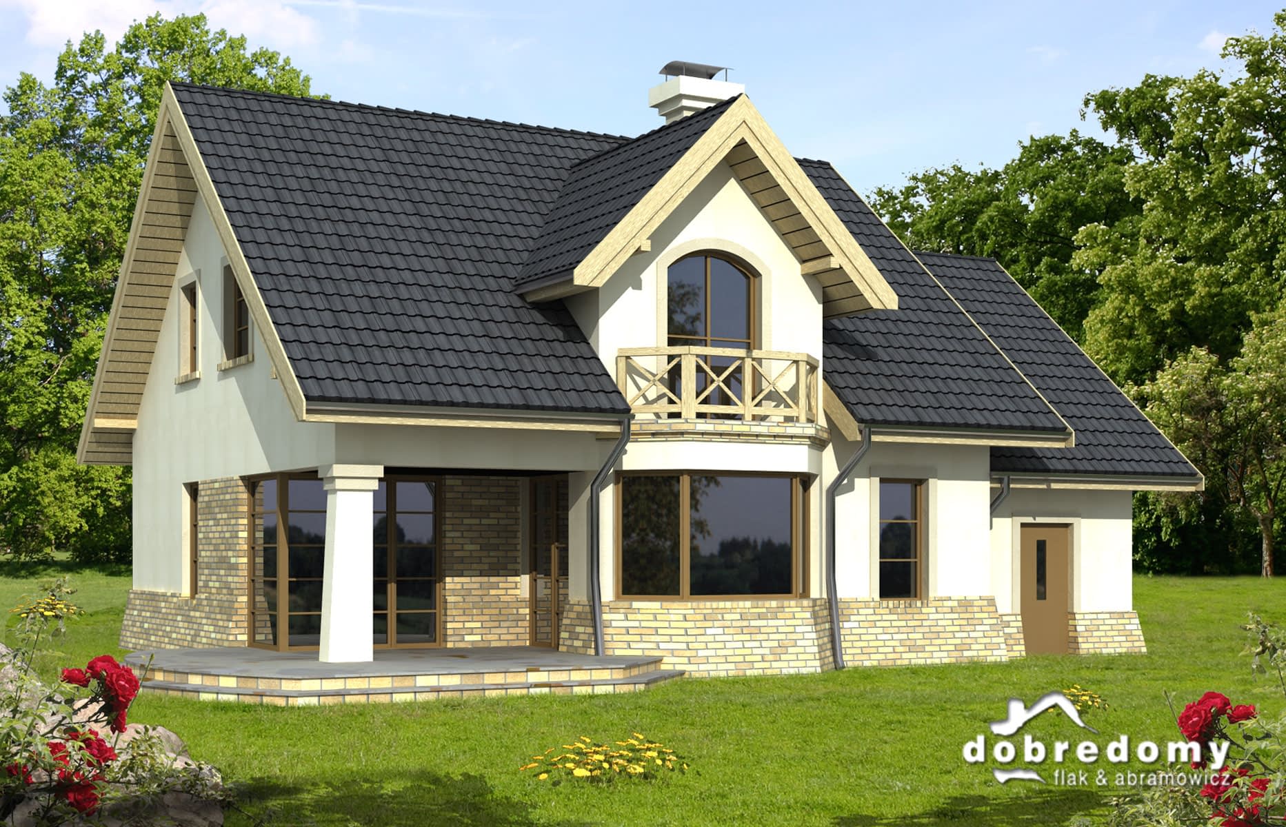 Elewacje pokryte tynkiem strukturalnym w systemie ociepleń Termo Organika. W projekcie zastosowano okna dachowe marki FAKRO. Pokrycie dachu - dachówka ceramiczna lub cementowa CREATON.