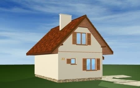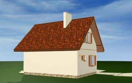 Projekt domu Francik to budynek jednorodzinny lub letniskowy. Łatwy i tani w budowie. Domek przykryto dwuspadowym dachem z jedną połacią przedłużoną, pod którą znajdują się: sień wejściowa i pomieszczenie gospodarcze. Projekt domu Francik na parterze posiada duży salon z kominkiem oraz kuchnię i łazienkę. Na poddaszu mieszczą się dwie sypialnie. Wejście do domu można umieścić zarówno od szczytu budynku jak również z boku (od połaci dachu). Dzięki temu dom wybudowany na podstawie projektu domu Francik można usytuować na dowolnej działce.