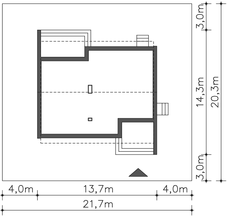 - Minimalne wymiary działki20.3 x 21.7m