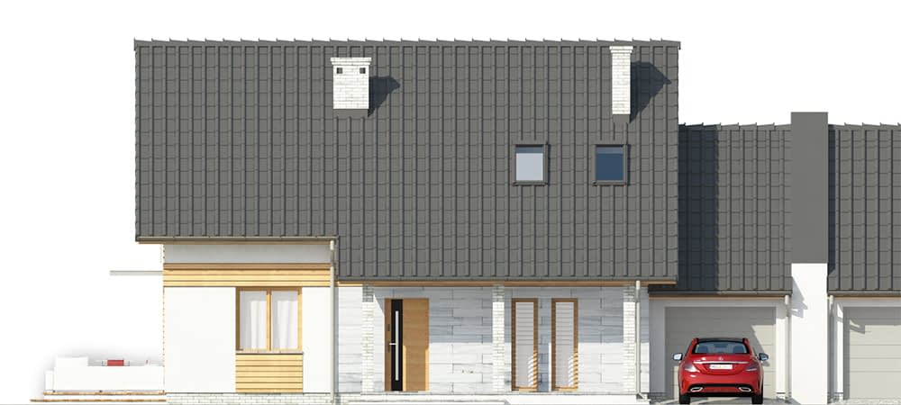 Dom jednorodzinny, w zabudowie bliźniaczej, niepodpiwniczony z poddaszem użytkowym i garażem.
