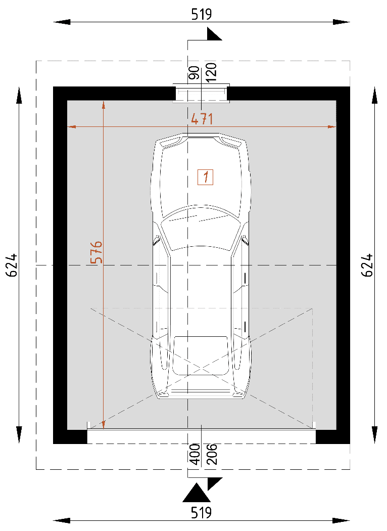 Garaż samochodowy jednostanowiskowy w technologii murowanej z możliwością dostawienia do budynku.Konstrukcja