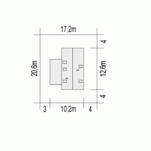 - Minimalne wymiary działki20.6 x 17.2m