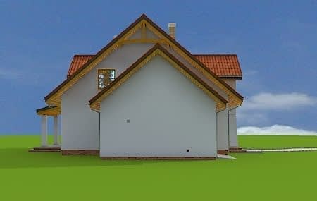 Projekt domu Gagatek to dom jednorodzinny dla rodziny cztero-sześcioosobowej. Parterowy budynek z poddaszem użytkowym, z dobudowanym garażem, przekryty dachami dwuspadowymi. Rzut parteru zbudowano na planie kwadratu z jasnym podziałem ścianami konstrukcyjnymi na dziewięć mniejszych części. Zasada taka daje bardzo czytelny, prosty i czysty układ konstrukcyjny budynku, co ułatwi realizację. W projekcie domu Gagatek także architektura zewnętrzna podporządkowana jest zasadzie symetrii - jedynym od niej odstępstwem jest dobudowany z boku garaż. Tradycyjny styl domu, z podcieniem wejściowym i kolumnami, z centralnie osadzonymi lukarnami, oraz z bocznym wykuszem jadalni, łączy się tutaj z zastosowanymi nowoczesnymi materiałami. Całość daje uniwersalny, ponadczasowy, a jednocześnie bezpretensjonalny wyraz. We wnętrzu domu, na parterze zaprojektowana została duża przestrzeń dzienna z salonem, jadalnią, holem i częściowo otwartą kuchnią. Na parterze przewidziano również miejsce na osobny pokój - gabinet lub sypialnię, oraz kotłownię i garaż. Na poddaszu zmieszczono aż cztery sypialnie, w tym jedną sypialnię rodziców z garderobą, oraz wygodną łazienkę. Pracownia posiada wersję projektu domu Gagatek w odbiciu lustrzanym.