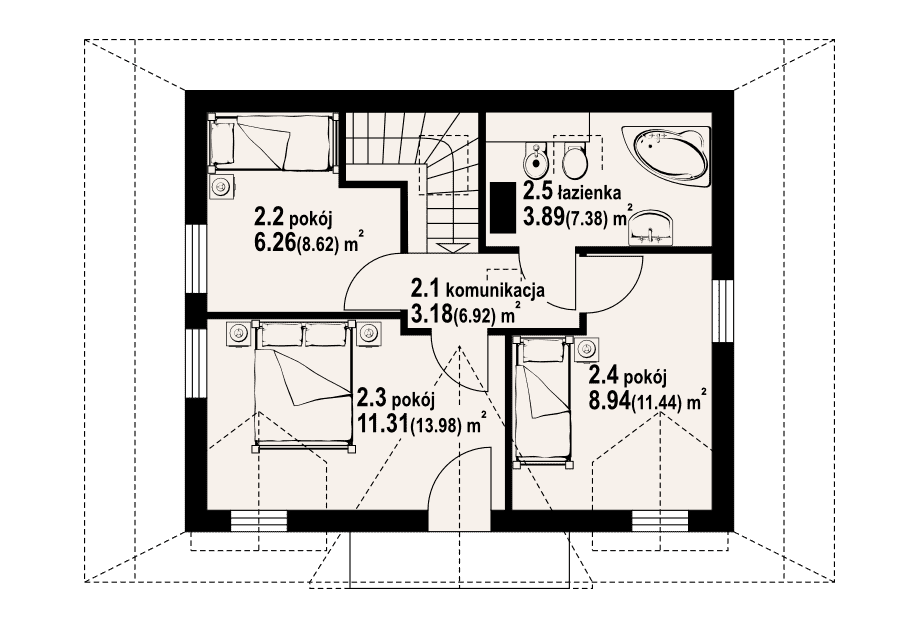 - KondygnacjeParterowy, z poddaszem