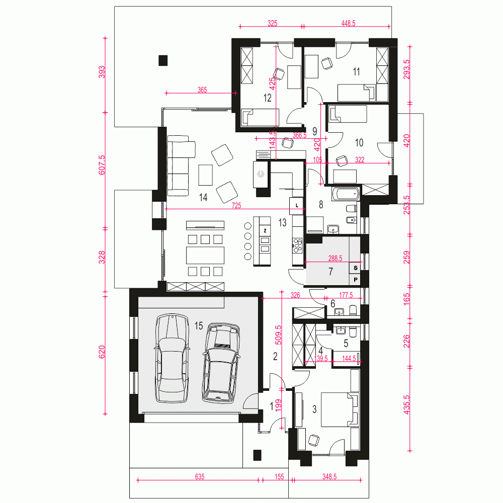Projekt Galena jest domem dużym, rozłożystym dopasowanym do wielkości standardowych działek na nowoczesnych osiedlach.Dla wszystkich szukających domu o bezkompromisowej funkcji projekt Galena jest idealnym rozwiązaniem. Galena to projekt z podwójnym garażem, czterema sypialniami w tym jedną podwójną - typu master bedroom z indywidualna łazienką i garderobą. Przestrzeń wspólną stanowi komfortowe wnętrze salonu z otwartą kuchnią, wyspą kuchenną, jadalnią, miejscem z kominkiem i wejściem na zadaszony luksusowy taras w podcieniu domu.Uzupełnieniem funkcji domu są pomieszczenia takie jak WC, spiżarnia przy kuchni, pomieszczenie techniczne z pralką i suszarką . Piękne duże przeszklenia od strony wszystkich pokoi, jadalni i salonu umożliwią dostęp dobrego dziennego światła dla mieszkańców tego wymarzonego domu.Elewacje domu zostały zaprojektowane z myślą o nowoczesnej stylistyce i luksusowej funkcji domu.