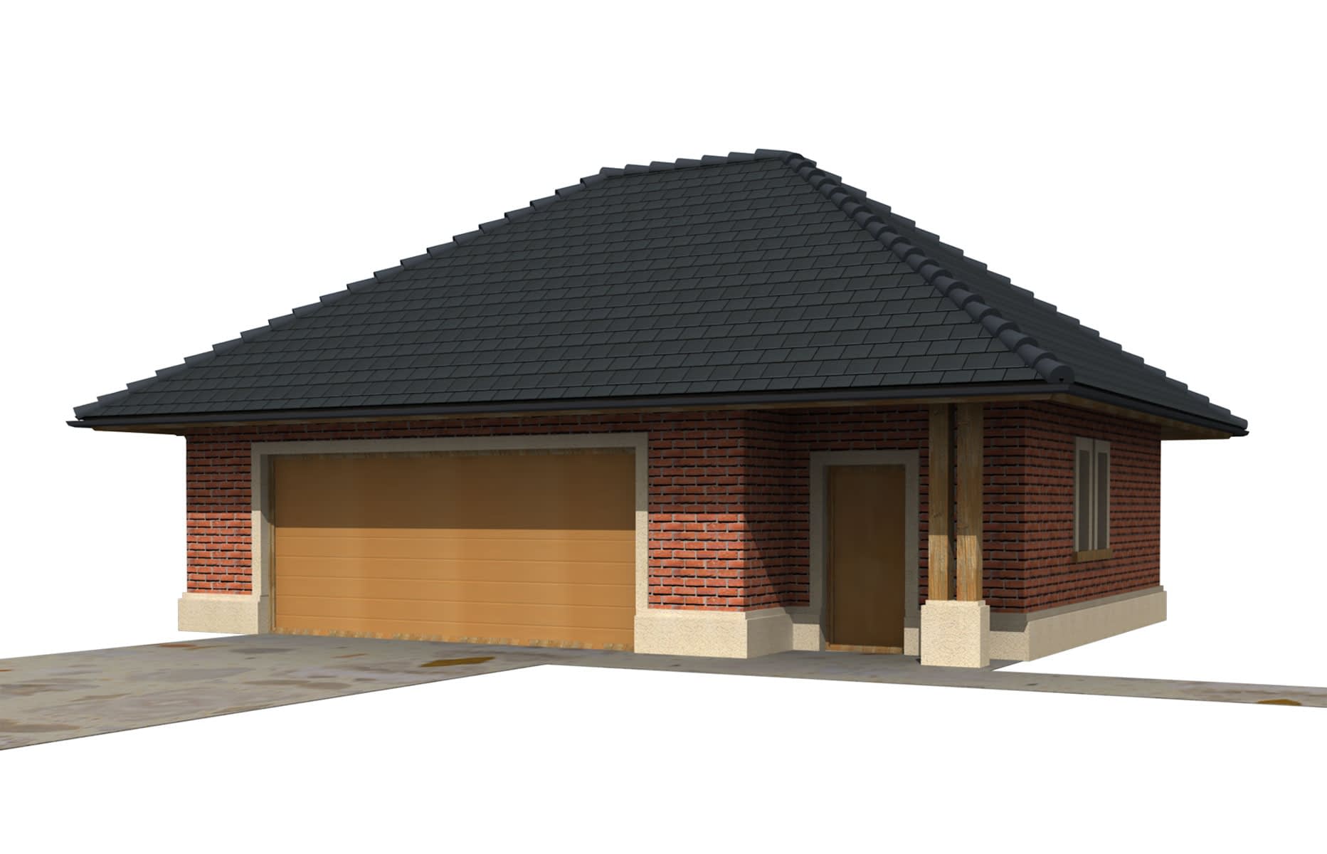 Garaż dwustanowiskowy, wolnostojący, z poddaszem użytkowym (strych). Szerokość bramy wjazdowej - 550cm.