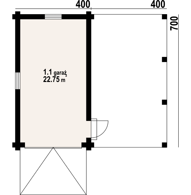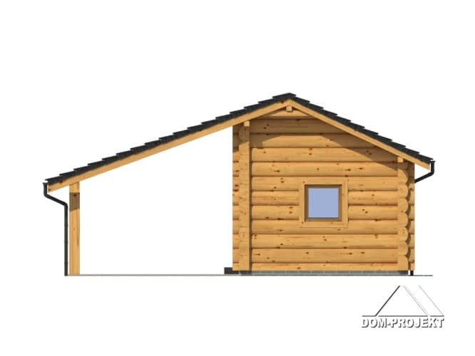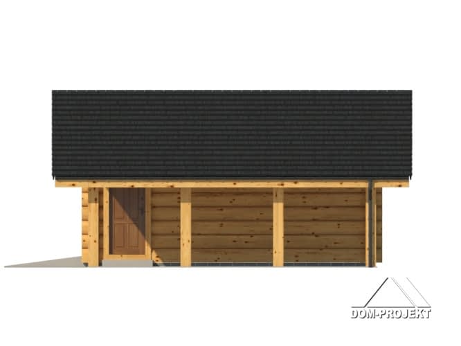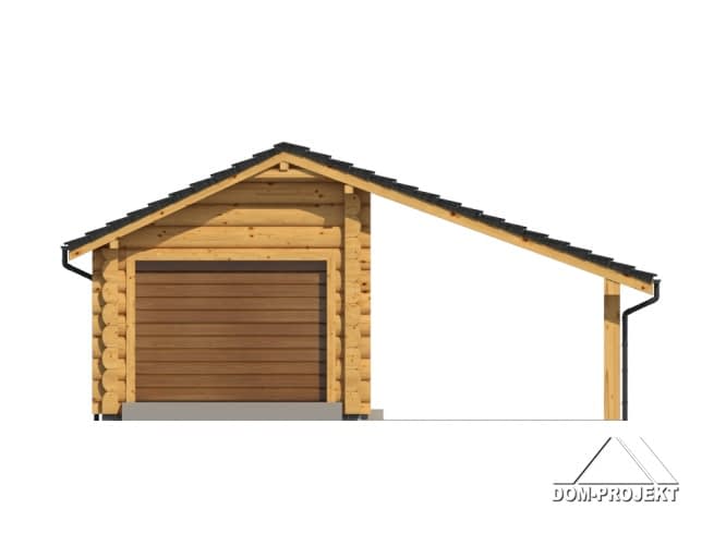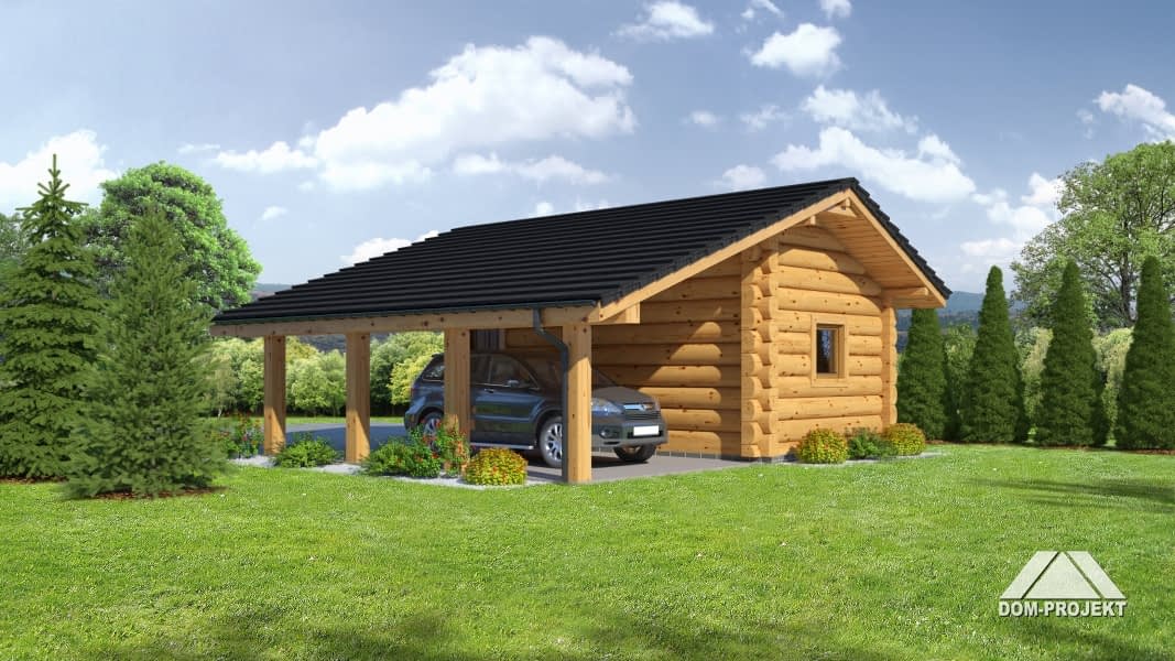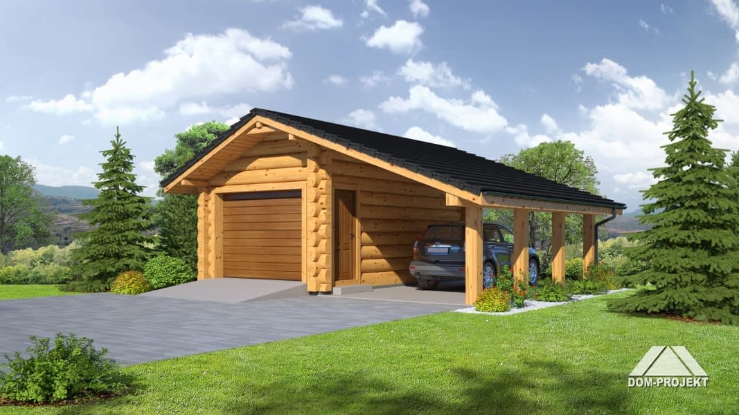 Garaż z bali drewnianych z wiatą na drugi samochód.Rzuty