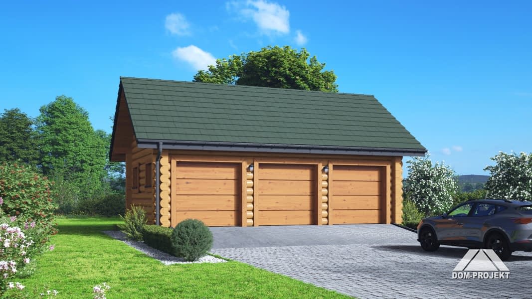 Garaż z bali na trzy samochody ze strychem.Rzuty