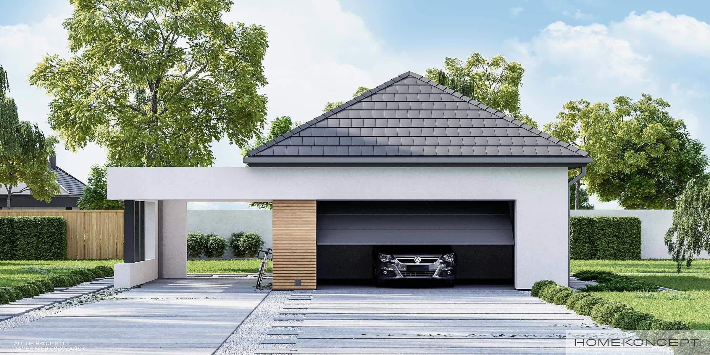 Elewacja: tynk silikonowy połączony z deskami elewacyjnymi - modrzew syberyjski