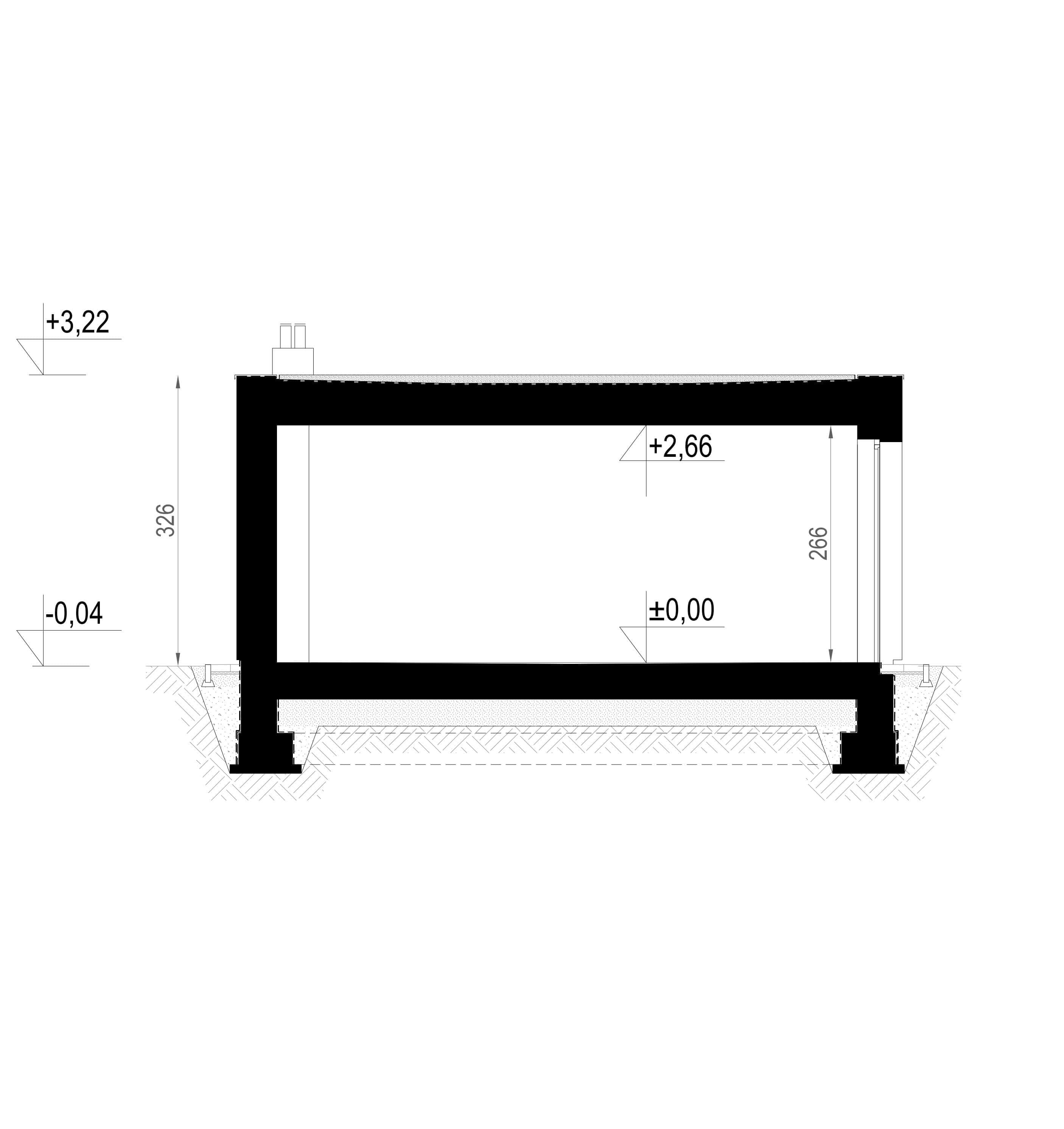 - zmiana wymiarów fundamentów wynikająca z dostosowania obiektu do warunków gruntowych i głębokości przemarzania gruntu oraz zmiana ław na płytę fundamentową
